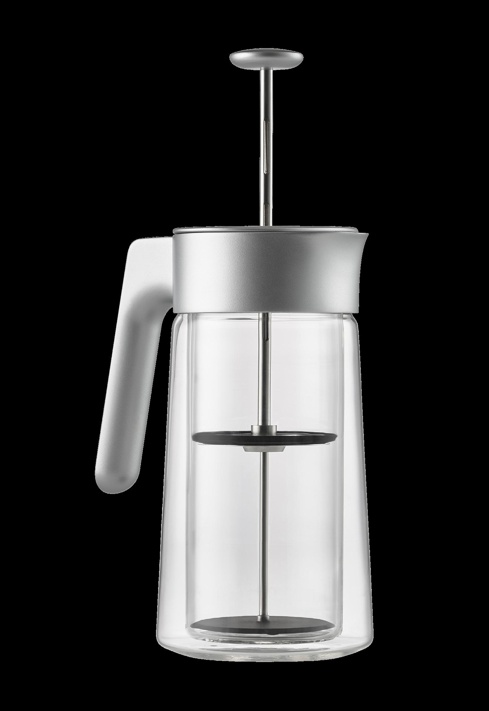 Dette gør det nemt at fjerne grumset og efterlader Coffee Press ren og klar til næste brygning. Den dobbeltvæggede konstruktion sørger for, at kaffen holder den perfekte temperatur og beskytter dine hænder mod varmen fra glasset. Coffee Pressen rummer 6 til 8 kopper.