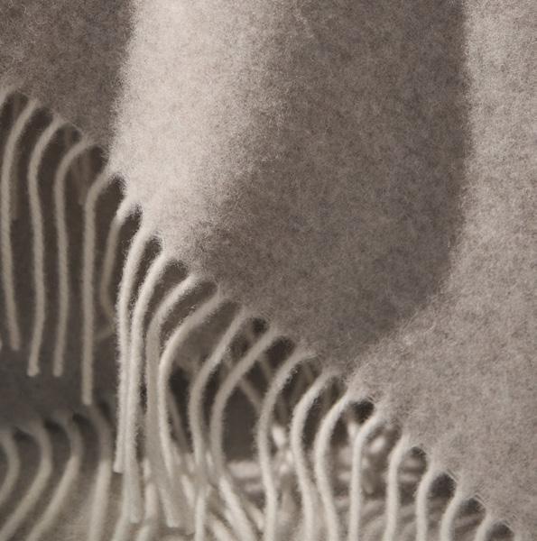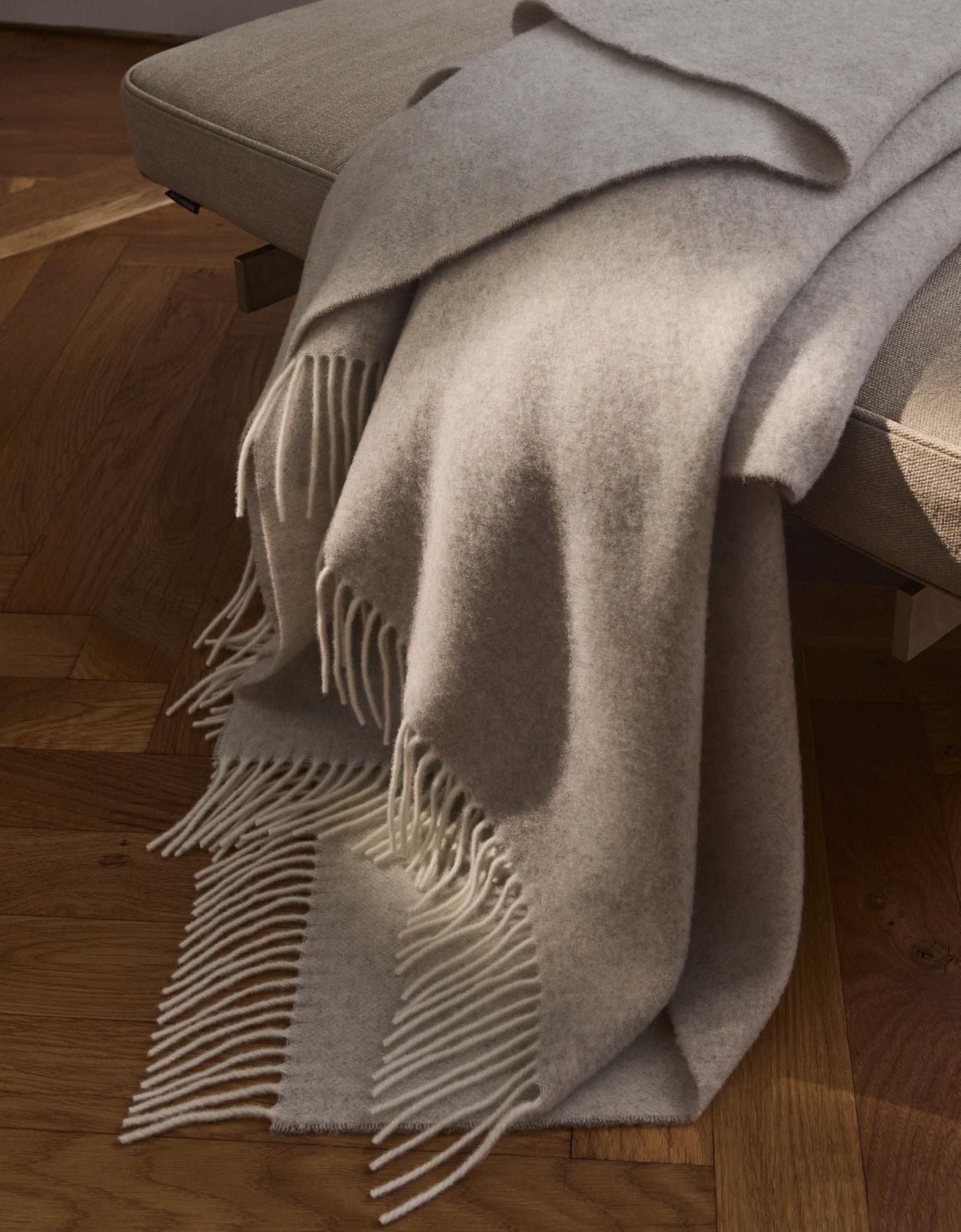 Med en diskret nuaneforskel på for- og bagside og ecrufarvede frynser har plaiden et klassisk og elegant udtryk.