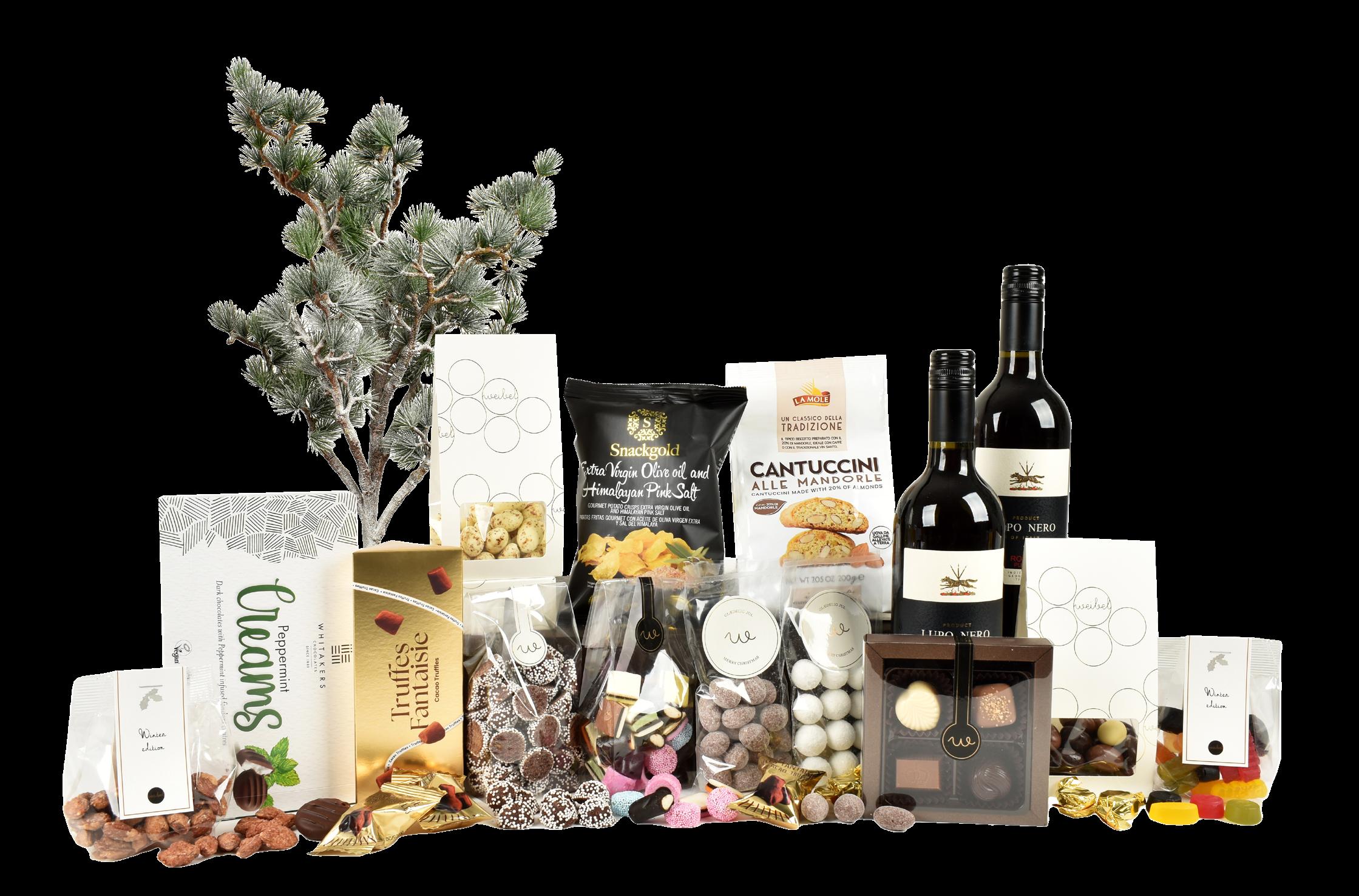 Gourmetchips med Himalayasalt 40g, Franske chokoladetrøfler (Classic) 50g i guldbar, Engelsk vingummi 90g, Luksus lakridskonfekt 180g, Juletoppe med cremet punchfyld 200g, Italienske cantucci med mandel 200g, Brændte mandler 65g, Fyldt belgisk chokolade (4 stk) i æske, Chocolate creams i æske (Pebermynte) 150g, Chokolademandler 75g, Mini marcipansnebolde i chokolade 70g, Chokolademandler med rom 100g, Blandede chokolademandler 100g, Franske chokoladetrøfler (Classic) 3 stk, Chokoladeovertrukne karameller 3 stk., Franske chokoladetrøfler (Classic) 3 stk.