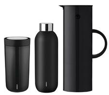 Med EM77 termokanden, Keep Cool drikkeflasken og To Go Click termokoppen bliver det nemt at holde drikke varme eller kolde i timevis – både hjemme og på farten. Det sorte sæt forener elegance og funktionalitet og tilføjer en diskret luksus til hverdagen.