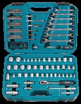 • 1/4” 4, 4.5, 5, 5.5, 6, 7, 8, 9, 10, 11, 12, 13, 14 mm, E4, E5, Topnøgleindsatser E6, E7, E8 (i alt 18)