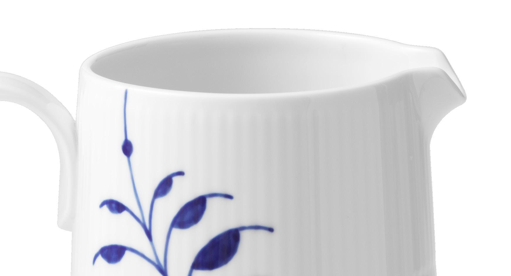 Porcelænskanden fra Royal Copenhagen rummer 150 cl af dine yndlingsdrikke, kolde som varme. Den dybe koboltblå farve på det håndmalede mønster fra Blå Mega Riflet gør enhver drik indbydende, hvad enten kanden bruges til.