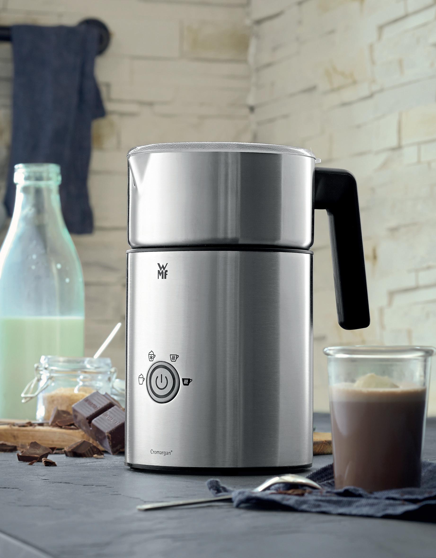 Mælkeskum eller varm chokolade? WMF Lono Milk & Choc er en ægte tusindkunstner, der både kan lave mælkeskum til din lækre cappuccino og smelte hele stykker chokolade til din varme chokoladedrik. Uanset om du foretrækker sojamælk, mælkefri eller laktosefri mælk, så klarer den smarte induktions-mælkeskummer enhver opgave som en leg. Når den har gjort sit arbejde, kan mælkebeholderen nemt rengøres i opvaskemaskinen. WMF Lono Milk & Choc - til feinschmeckere i alle aldre.