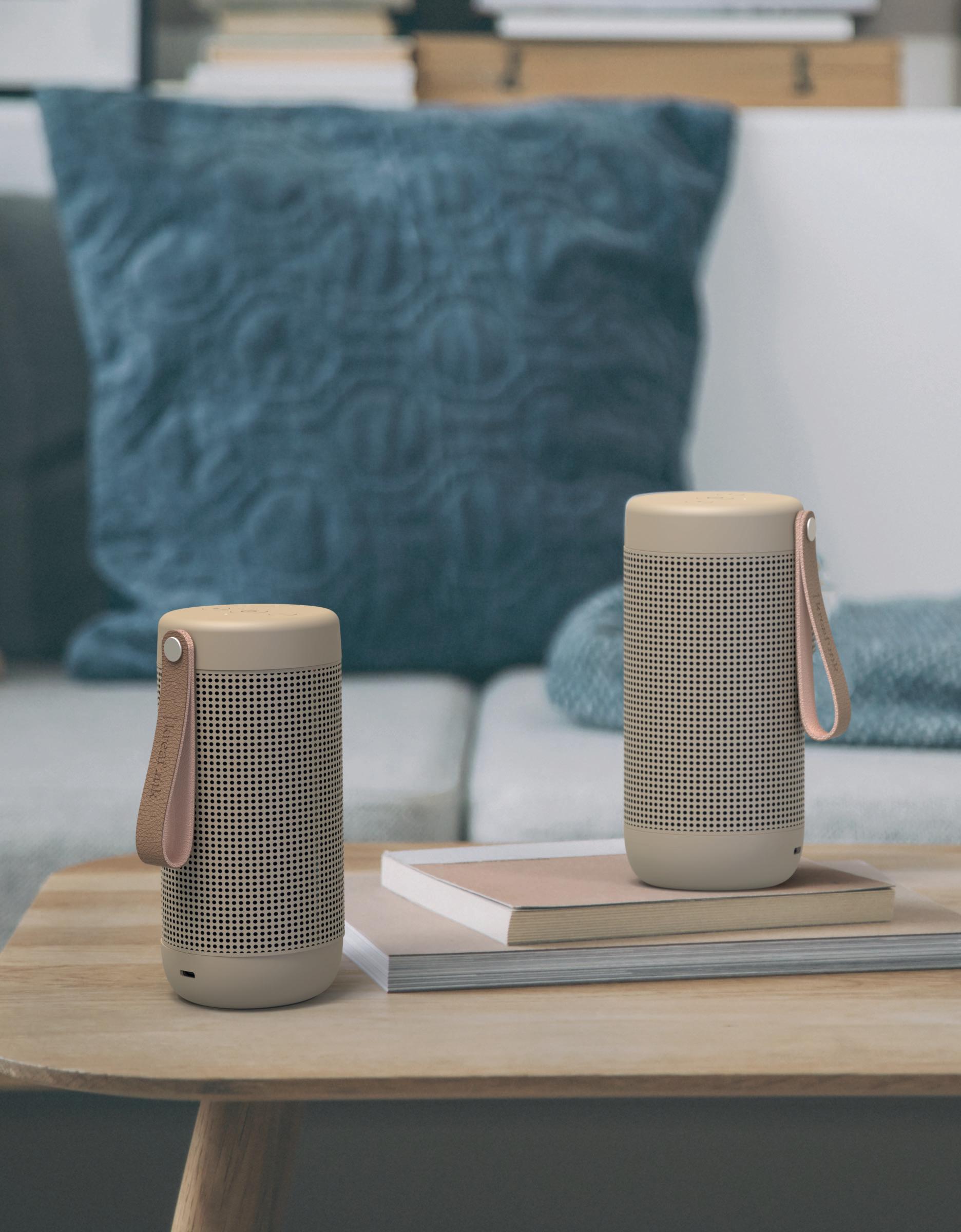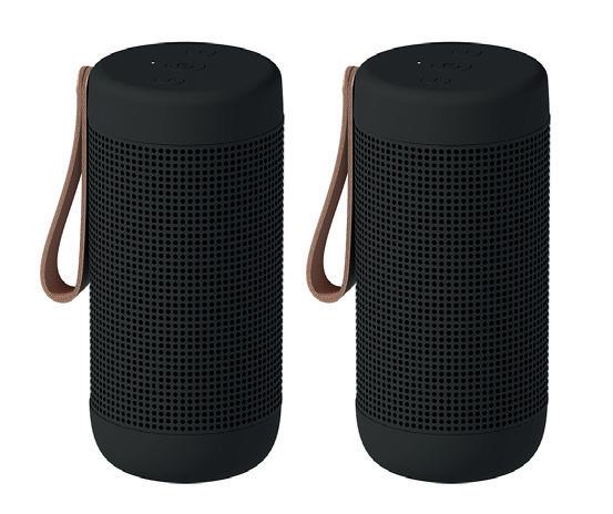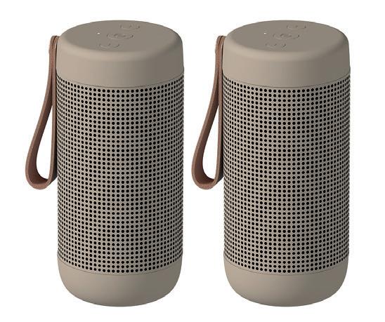 aCOUSTIC kan også oplades helt trådløst via en af Kreafunks trådløse opladere, wiCHARGE eller wiCHARGE GO. Med en IPX5 rating er vådt vejr ingen hindring, hvilket også betyder, at den er perfekt til at tage med på stranden eller have stående på badeværelset. Vælg imellem 2 stk. sorte, eller 2 stk. sand.