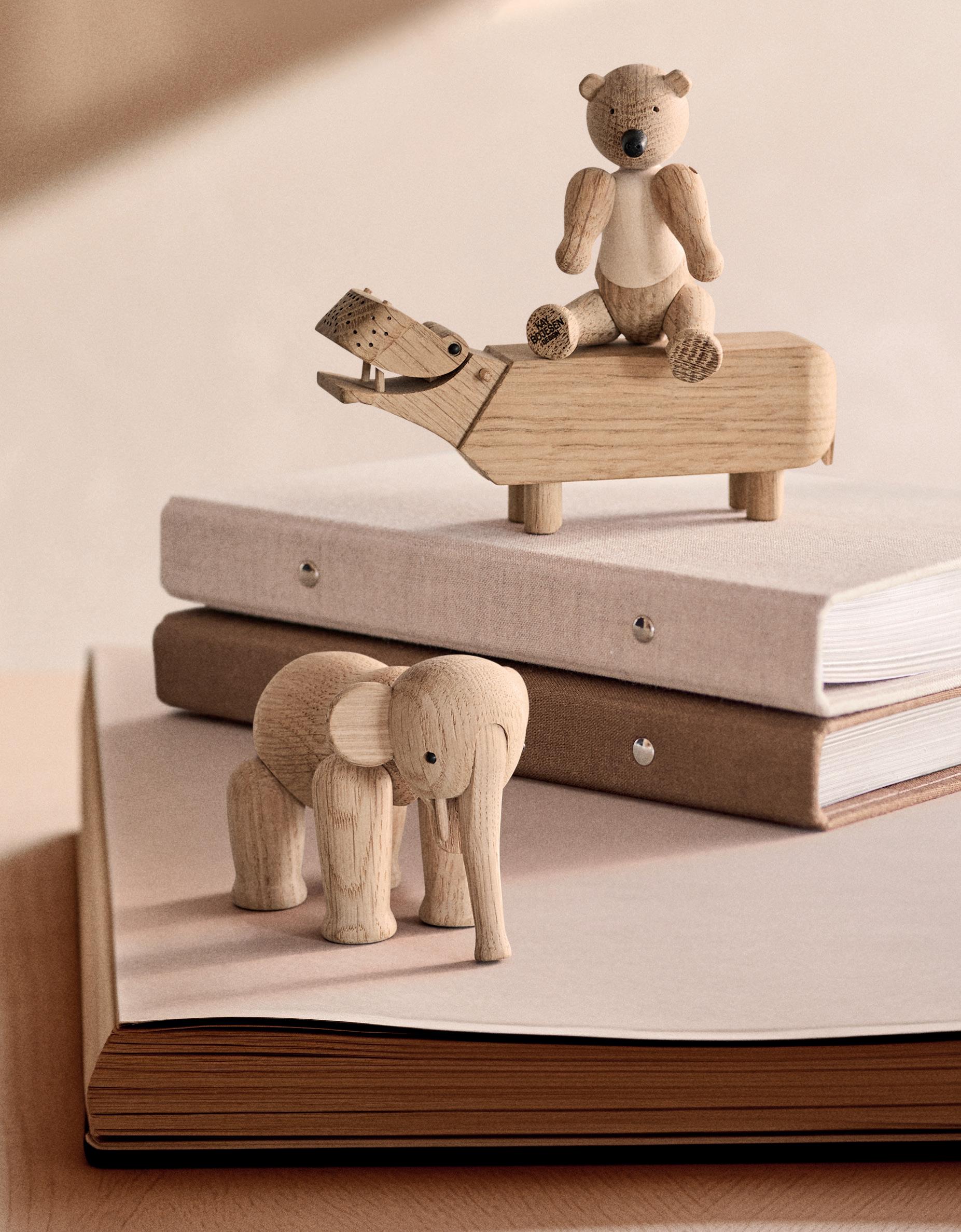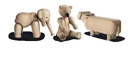Mød Bjørnen på 9,5 cm, Elefanten på 7,5 cm og Flodhesten på bare 6 cm i højden.