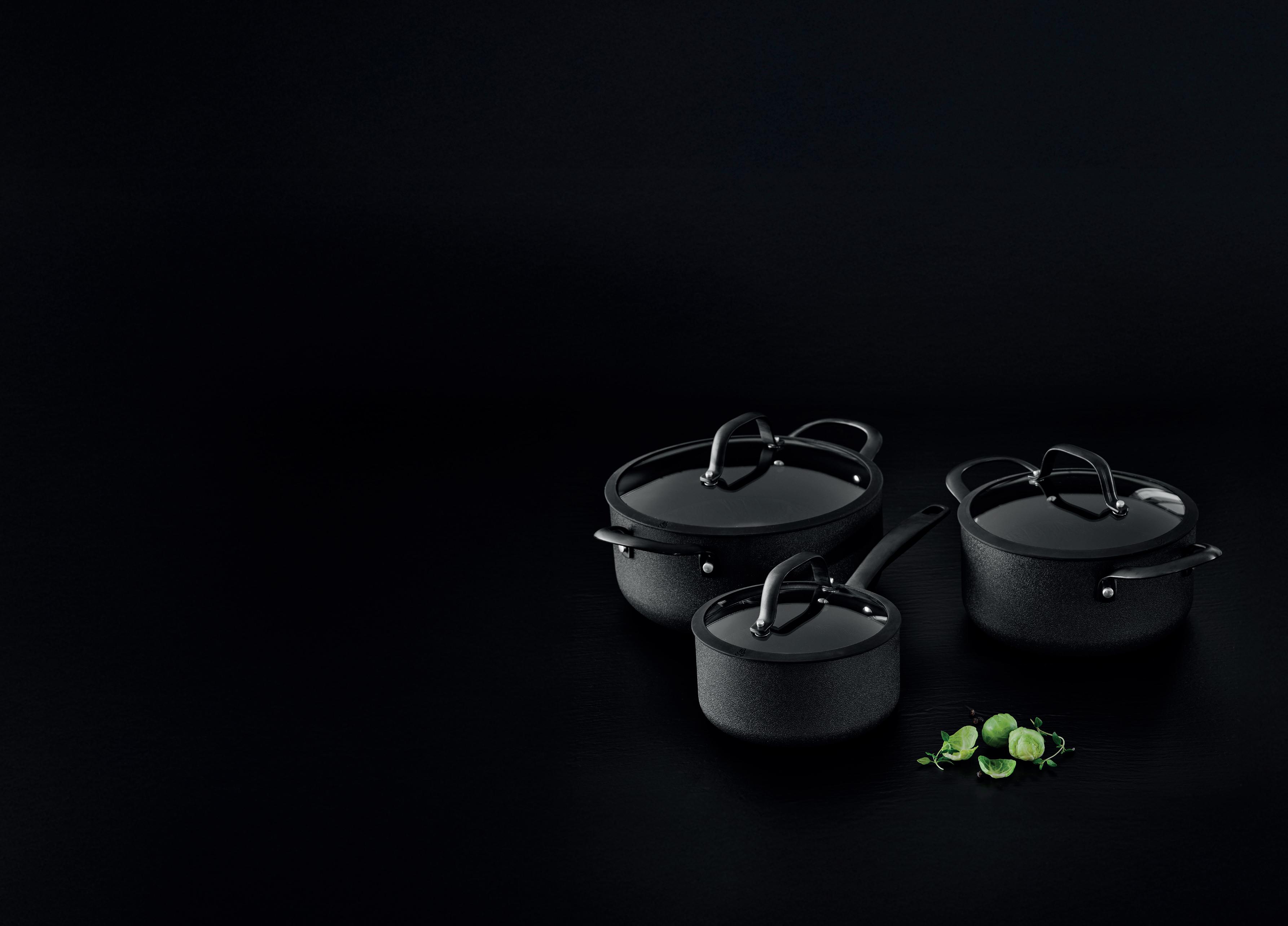 Morsø Black Fossil er en serie af moderne gryder i smukt design med et mørkt og eksklusivt udtryk. Kroppen er fremstillet af 100% genanvendt aluminium. Indvendigt har de en sort keramisk belægning, udvendigt er de sandblæst og forsynet med en varmeresistent sort coating, og alt er produceret uden PFAS. Selv om produkterne ser tunge ud, føles de lette, når du får dem i hænderne. Black Fossil-produkterne er formet i ét stykke og bunden er sprayet med metalpartikler som gør gryderne velegnede til alle varmekilder, også induktion. Derfor skal du også løfte dem, ikke skubbe, for at undgå ridser i komfuret. Håndtag og greb er af støbt stål med matsort finish. Glaslågene har silikonekant som mindsker støjen, når låget lægges på.