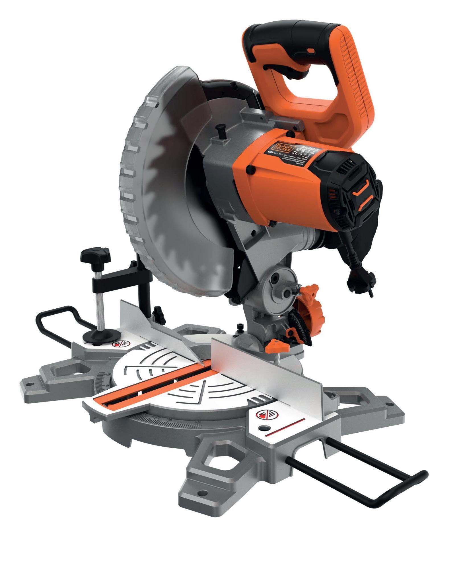 • Leveres med en 216 mm, 24T-klinge til hurtig skæring og en materialeklemme til at holde arbejdsemnet sikkert på plads.