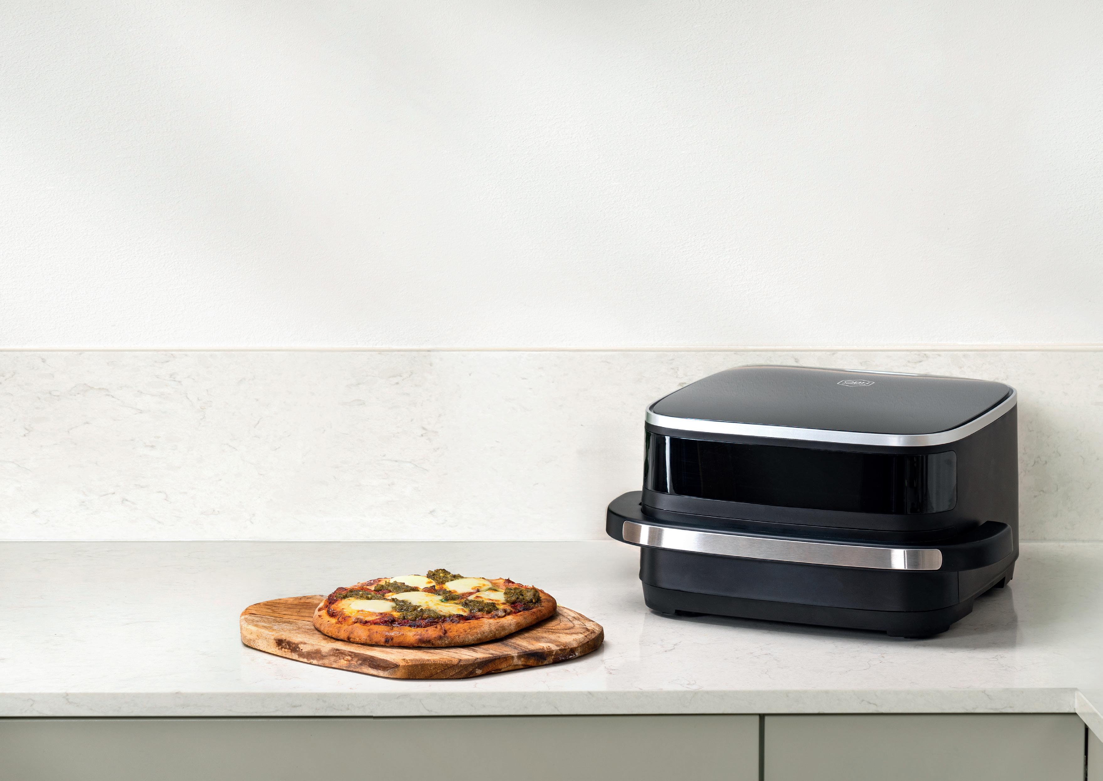 Lav sprøde, hjemmelavede pizzaer på ganske få minutter. Pizzaovnen er nem at betjene med en simpel temperaturstyring fra 150 °C til 430 °C og en smart timer, der kan indstilles fra 1 til 60 minutter. Du kan vælge mellem overvarme, undervarme eller en kombination af begge. Det er nemt at tilpasse varmen alt efter, hvordan du bedst kan lide din pizza – fordi nogle gange kræver en sprød bund lidt ekstra undervarme, og andre gange er det osten, der skal have det sidste fra oven. Det indvendige lys og den praktiske glaslåge gør det let at holde øje med pizzaen undervejs. Der medfølger en pizzasten på 30 cm, som giver en jævn varmefordeling, kort bagetid og en lækker pizzabund.