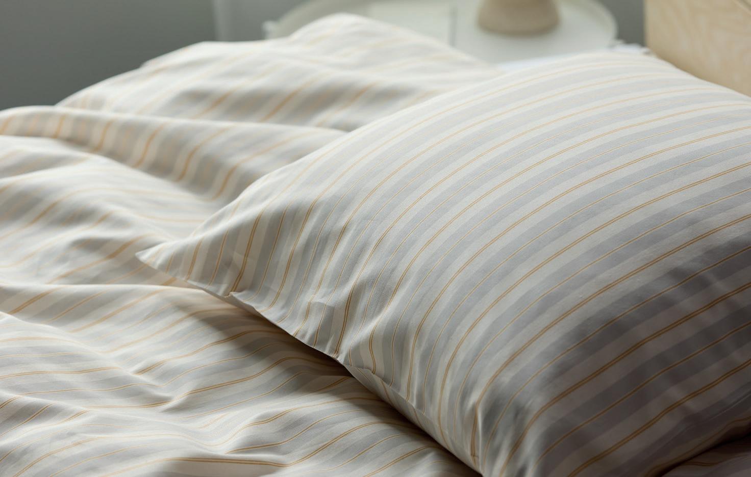 Det elegante stribede Flow-sengetøj er en blød og åndbar bomuldskvalitet i plain weave, mens det sprøde, luksuriøse Whisper-sengetøj er af 100 % økologisk bomuld i en klassisk percale-vævning og certificeret med Svanemærket. Begge design har praktisk lynlås i pude- og dynebetræk. Vælg mellem 140 x 200 cm og 140 x 220 cm.