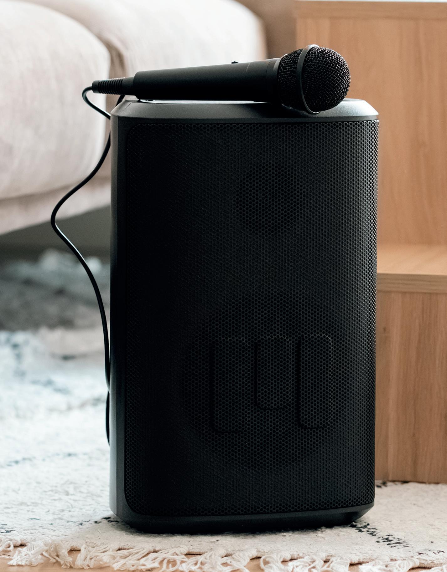 Syng med til festen: Mikrofon medfølger. Mål: 21,2 x 33,5 x 19 cm.