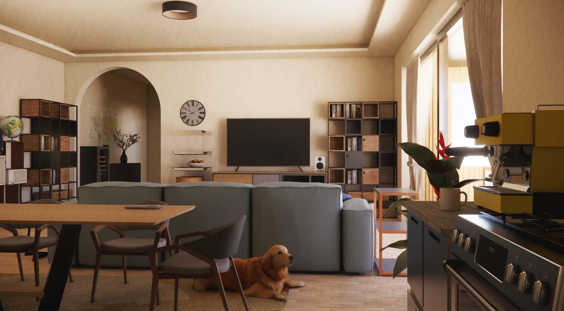 A double ceiling space, complemented by arch-shaped double windows for maximum natural light.