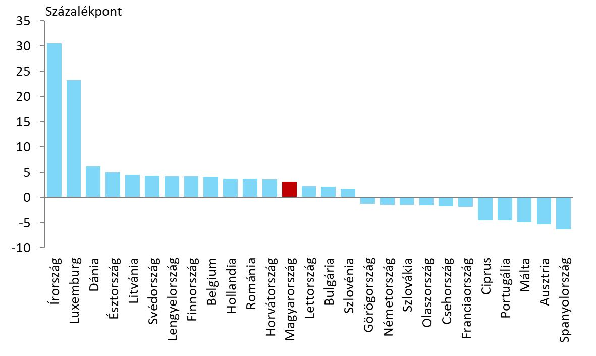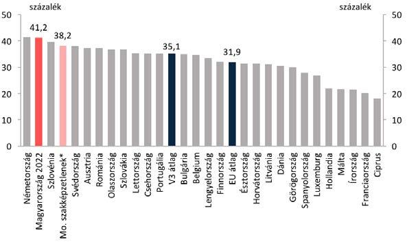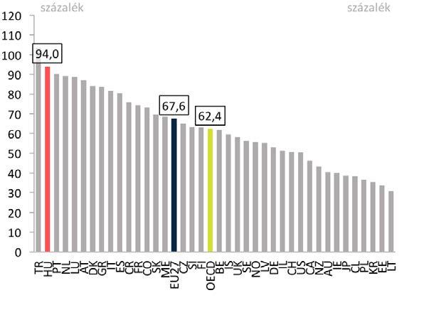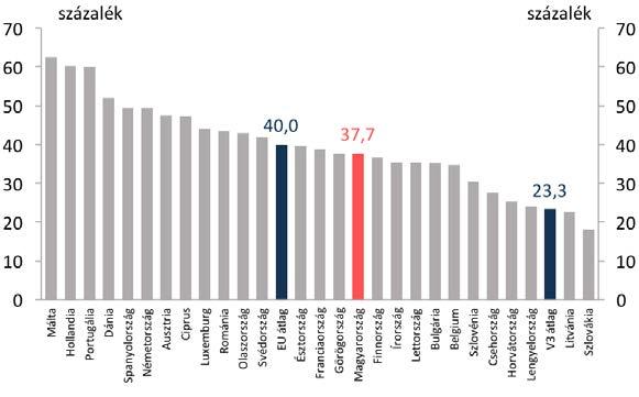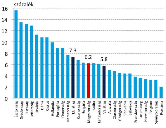 Megjegyzés: Zöld mezőben a kelet-közép-európai, narancssárga mezőben a mediterrán országokat jelöltük. Forrás: Eurostat