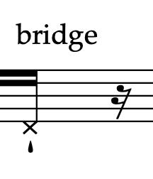 Blank note heads notated after a specific note head indicate that the player repeats the technique within the specified rhythm after.