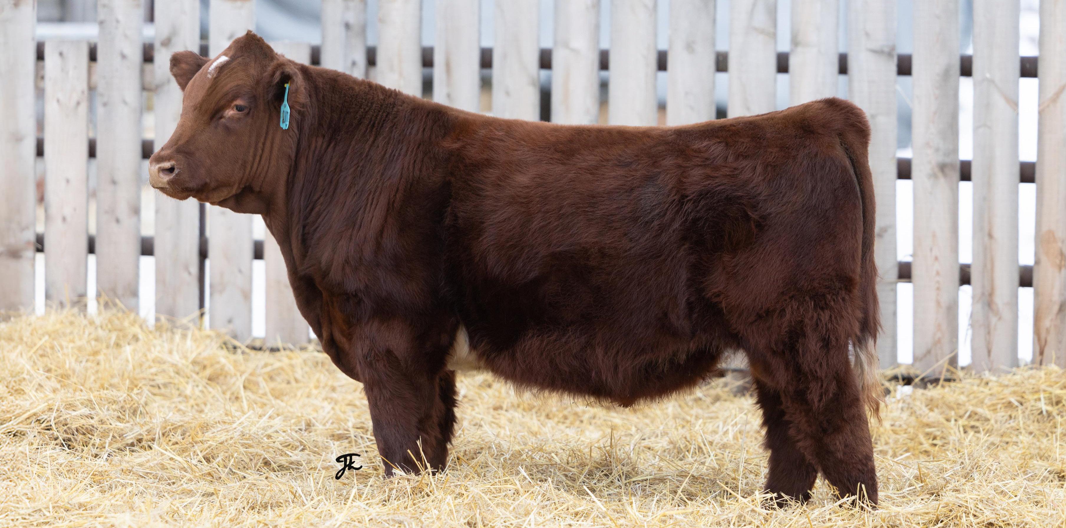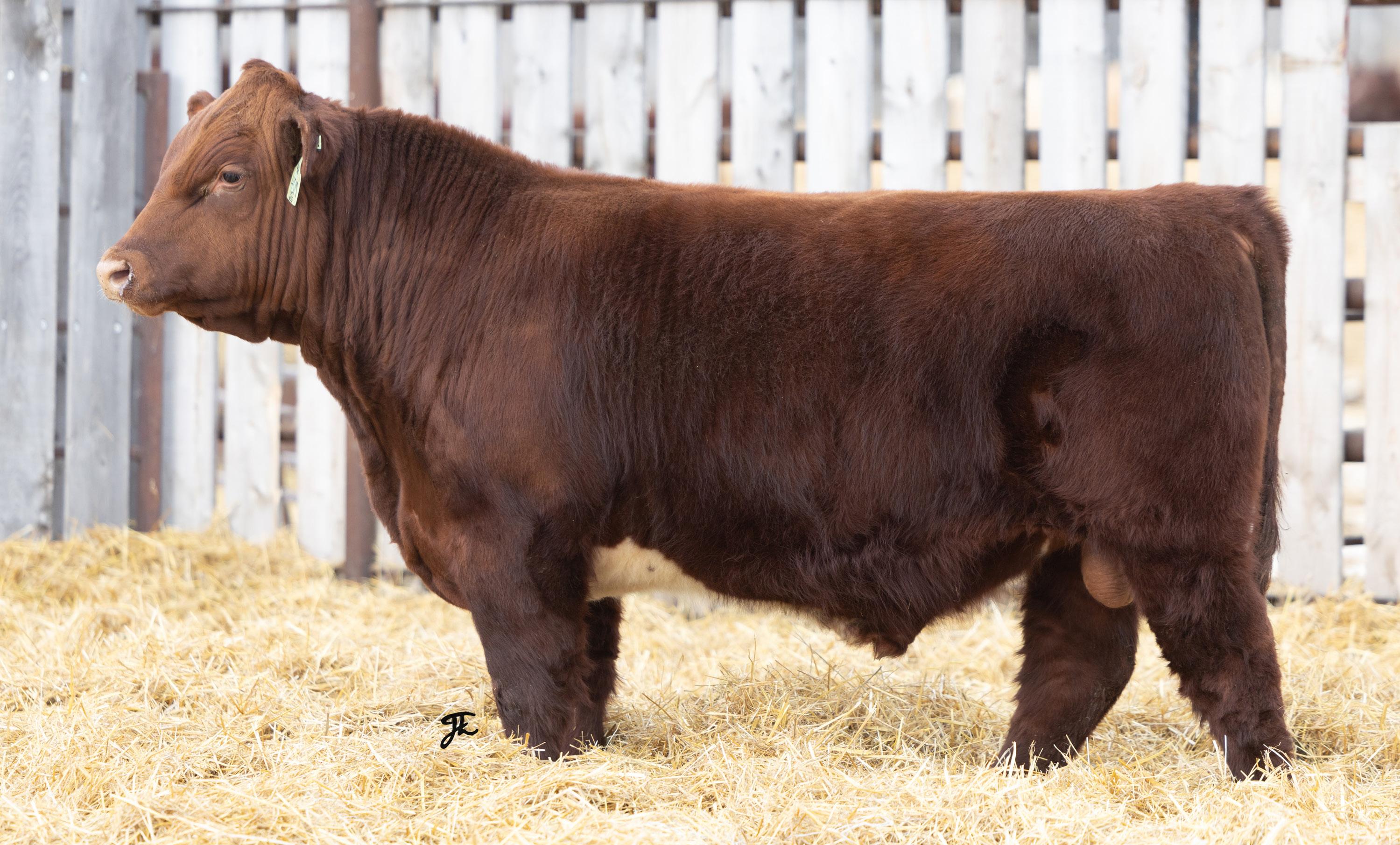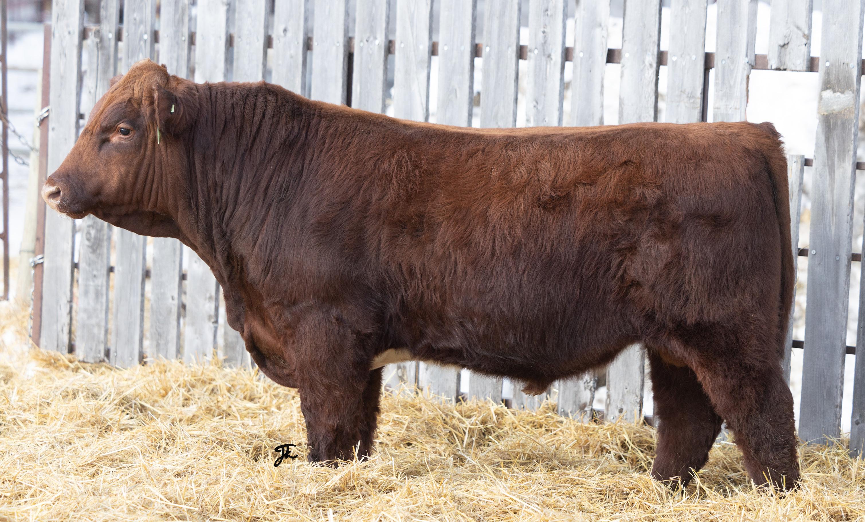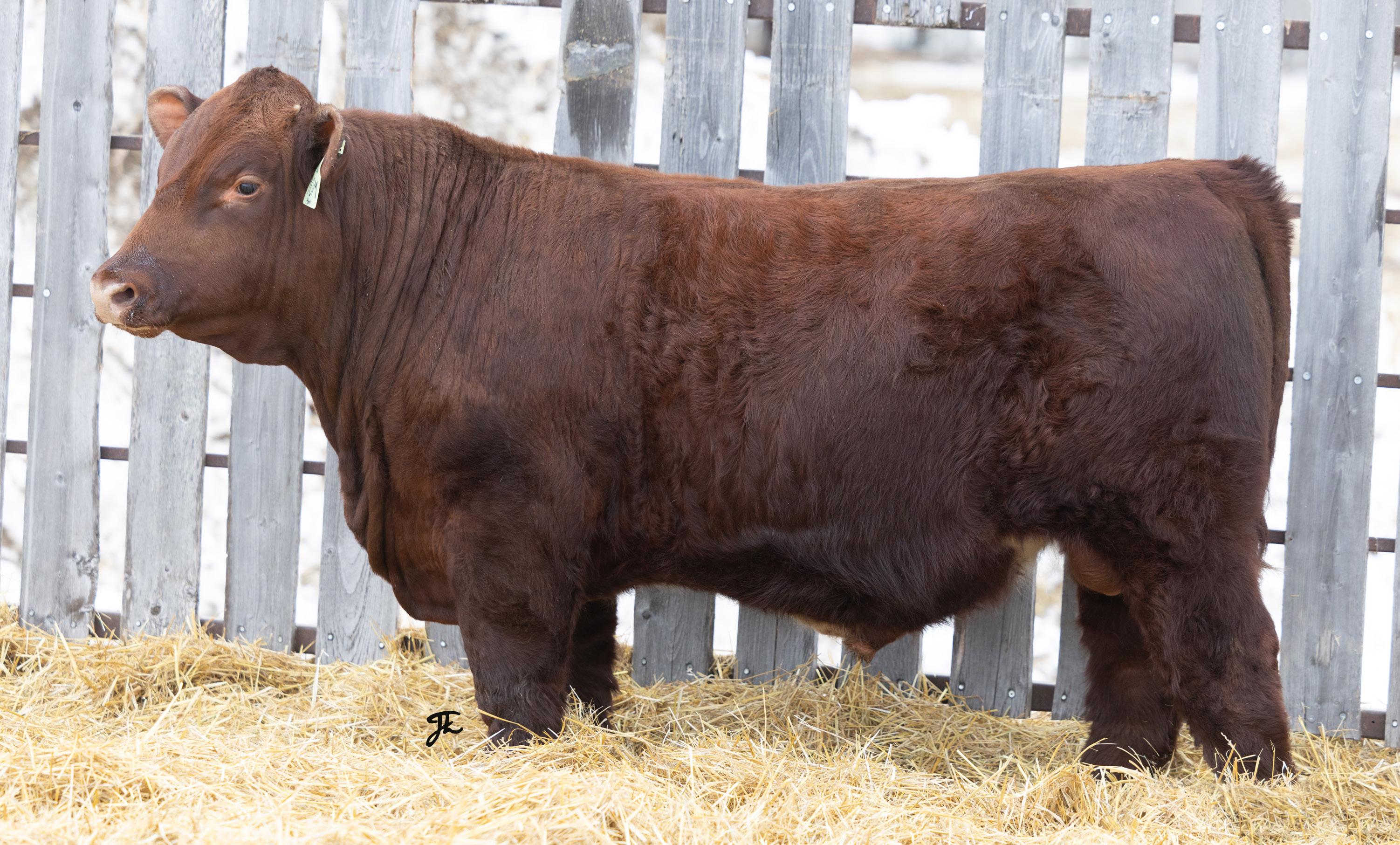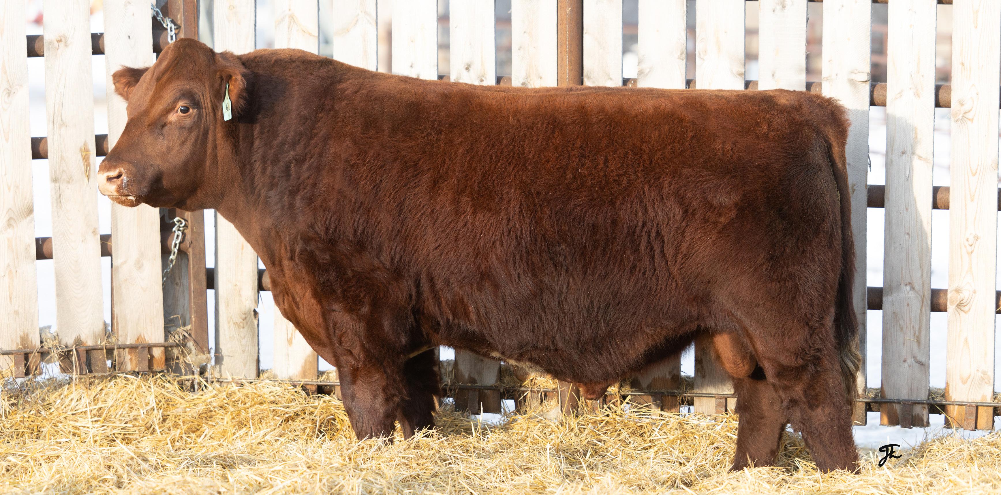 stout red bull is a full sibling to 6L – 2-year-old. He carries the same depth of body and muscling.