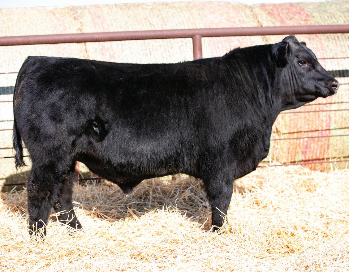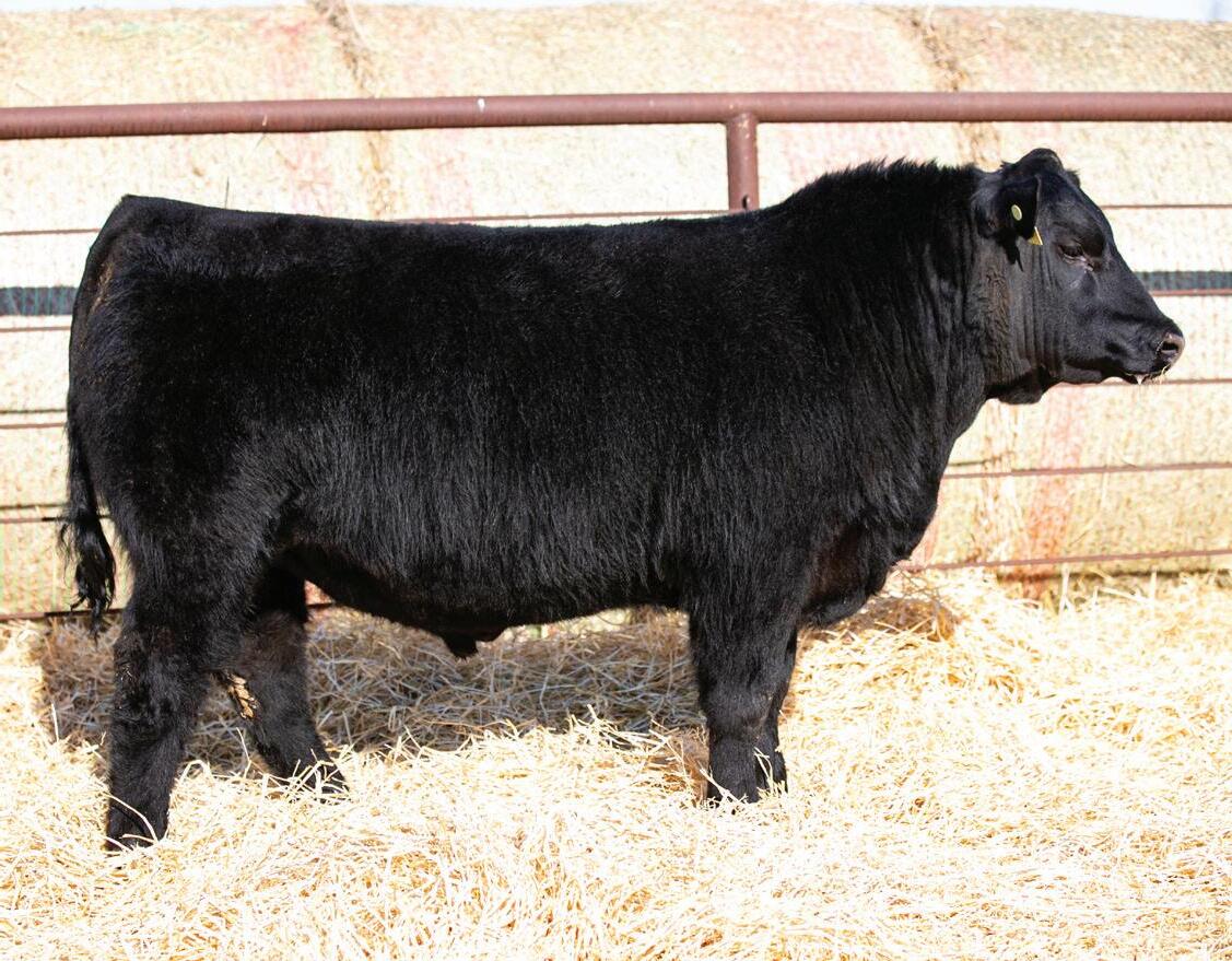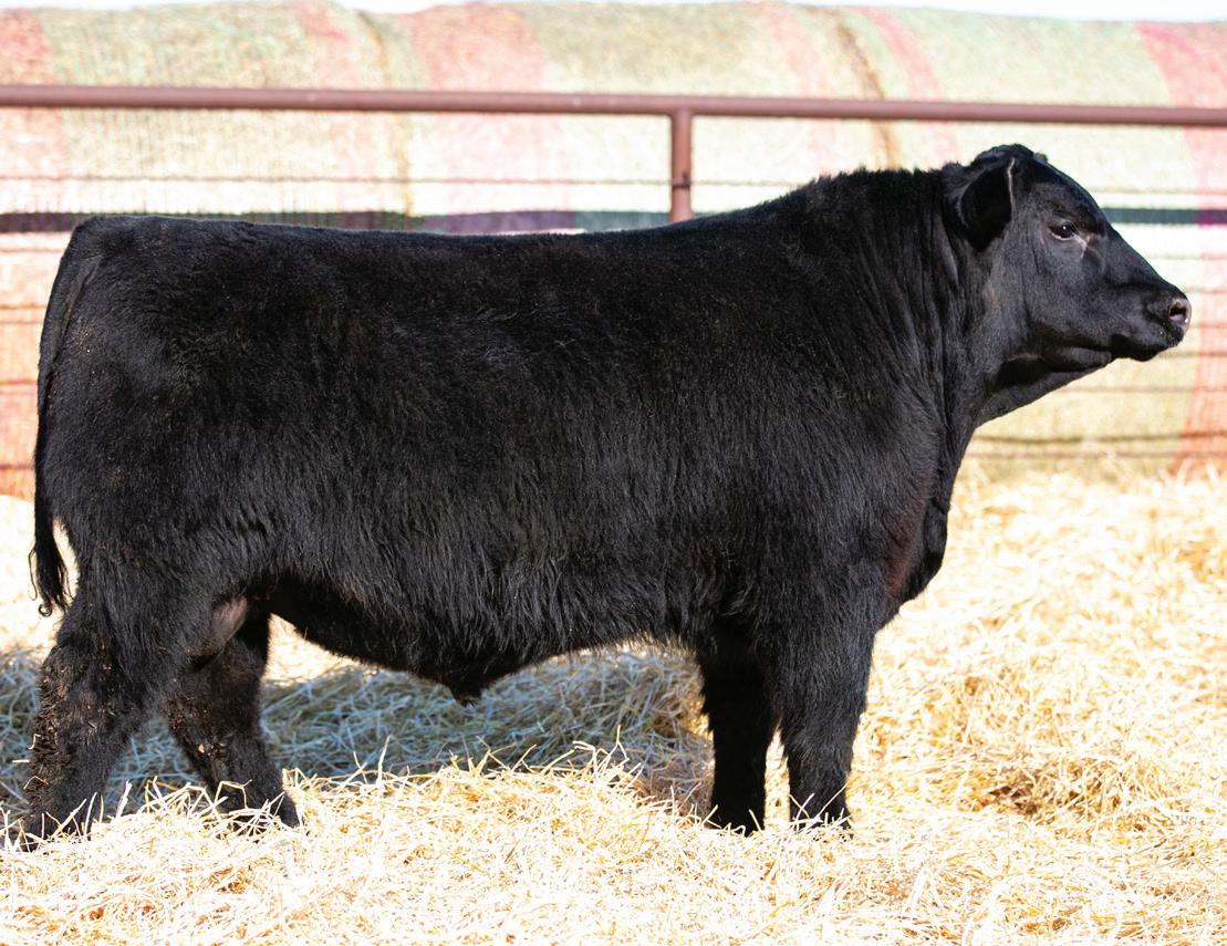 This guy has been special all along. He is a little more moderate and stouter made than most of the Resilient sons. We hold the ‘J’ model cows in high regard here and believe that when they raised their rst calves last year, they were the best group of 2-year-olds we ever produced, and this bulls dam, 77J is at the very top of that group. With a weaning index of 112 and a yearling index of 121, he combines great phenotype with above average calving ease and performance.