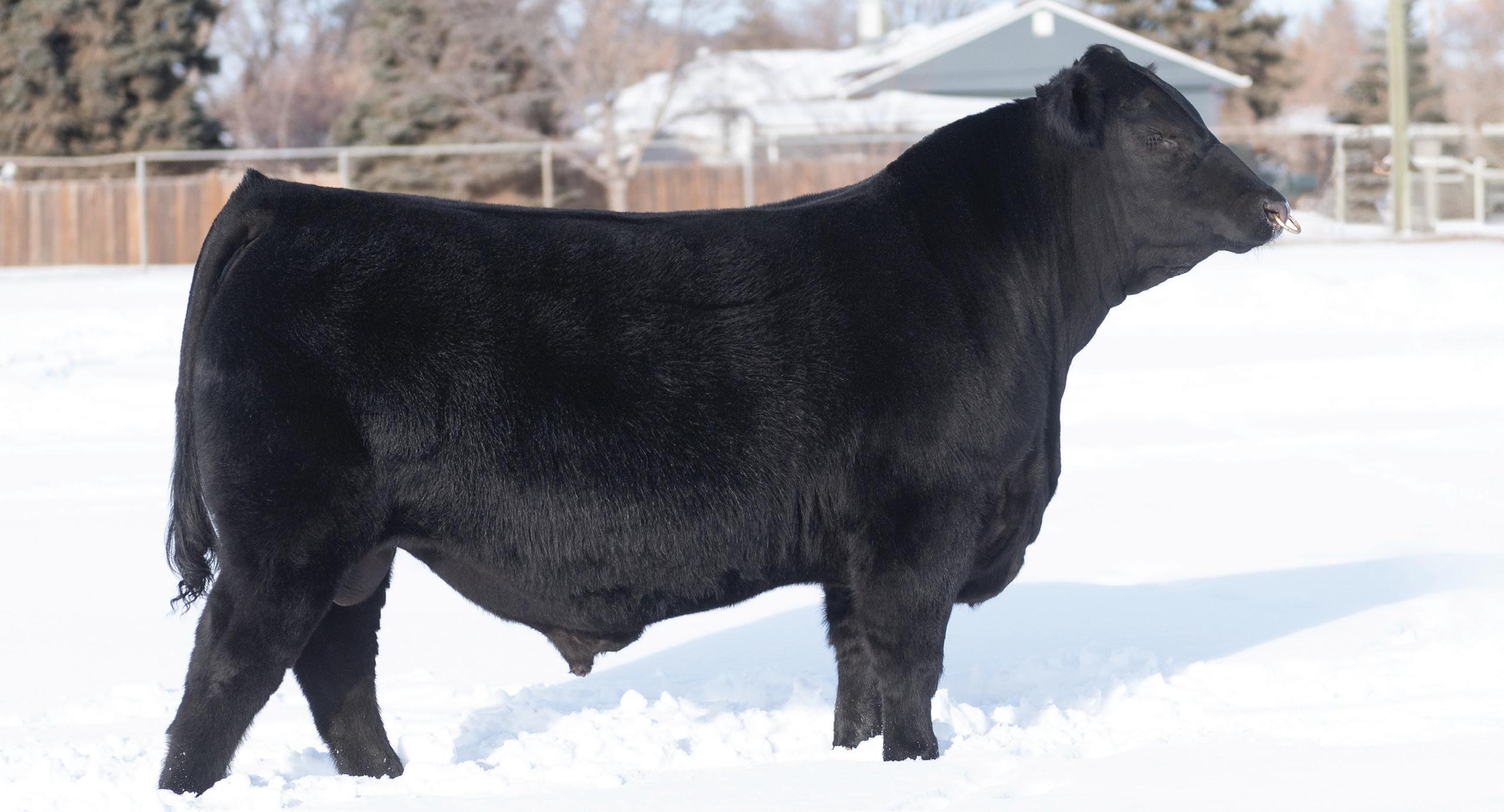 This bull’s mother is maturing into a nice cow with a square and level udder. His grandmother is considered a Canadian Angus Elite Dam and raised 11 calves, remaining in production until she was 13 years old.