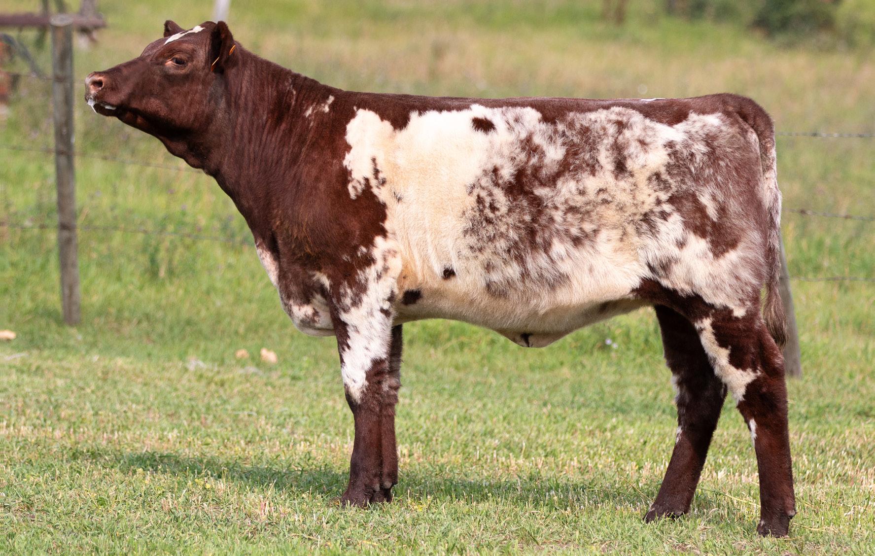 Kricket is a big framed, wide hipped, easy fleshing, deep bodied, docile performance female with excellent bone structure. Breed any way you choose to! The cross of Circle M Field Marshall 2F and Cactus Flat Fidget 2F have proven performance, frame, depth, milk production with a beautifully structured udder. Kricket’s dam is one of the chosen females involved in the Lingley Livestock and Cactus Flat Shorthorns partnership.