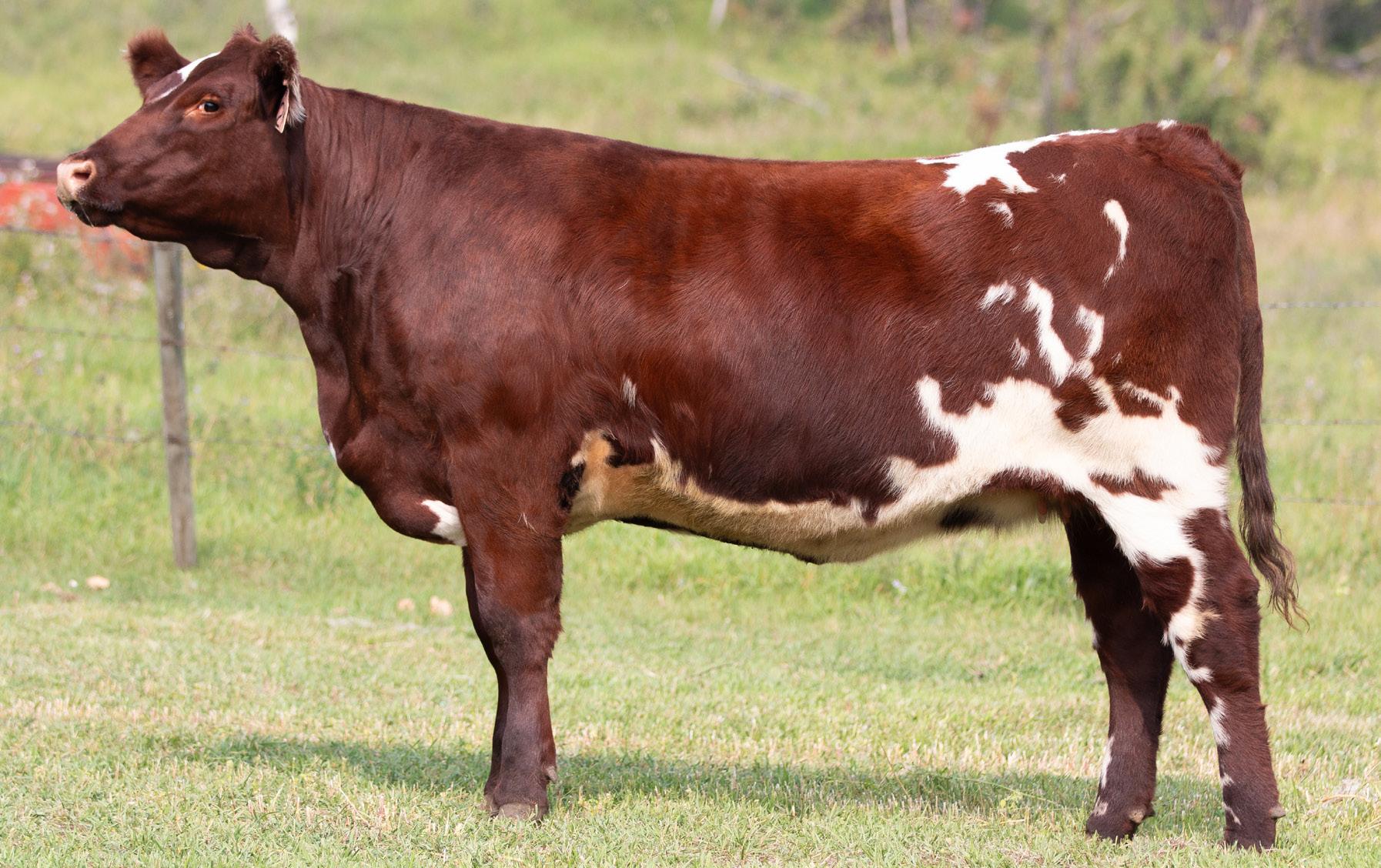 The youngest heifer on offer from us, but one we were excited to have in our replacement pen. “Fancy Dancer” was purchased from Rocky Bishop (Cointreau Farms) as a calf. With some powerful Creekside bloodlines to back her up, we knew she was going to be an asset. Fancy Dancer was rebred to Lingley’s John Kinney for a 2024 calf.
