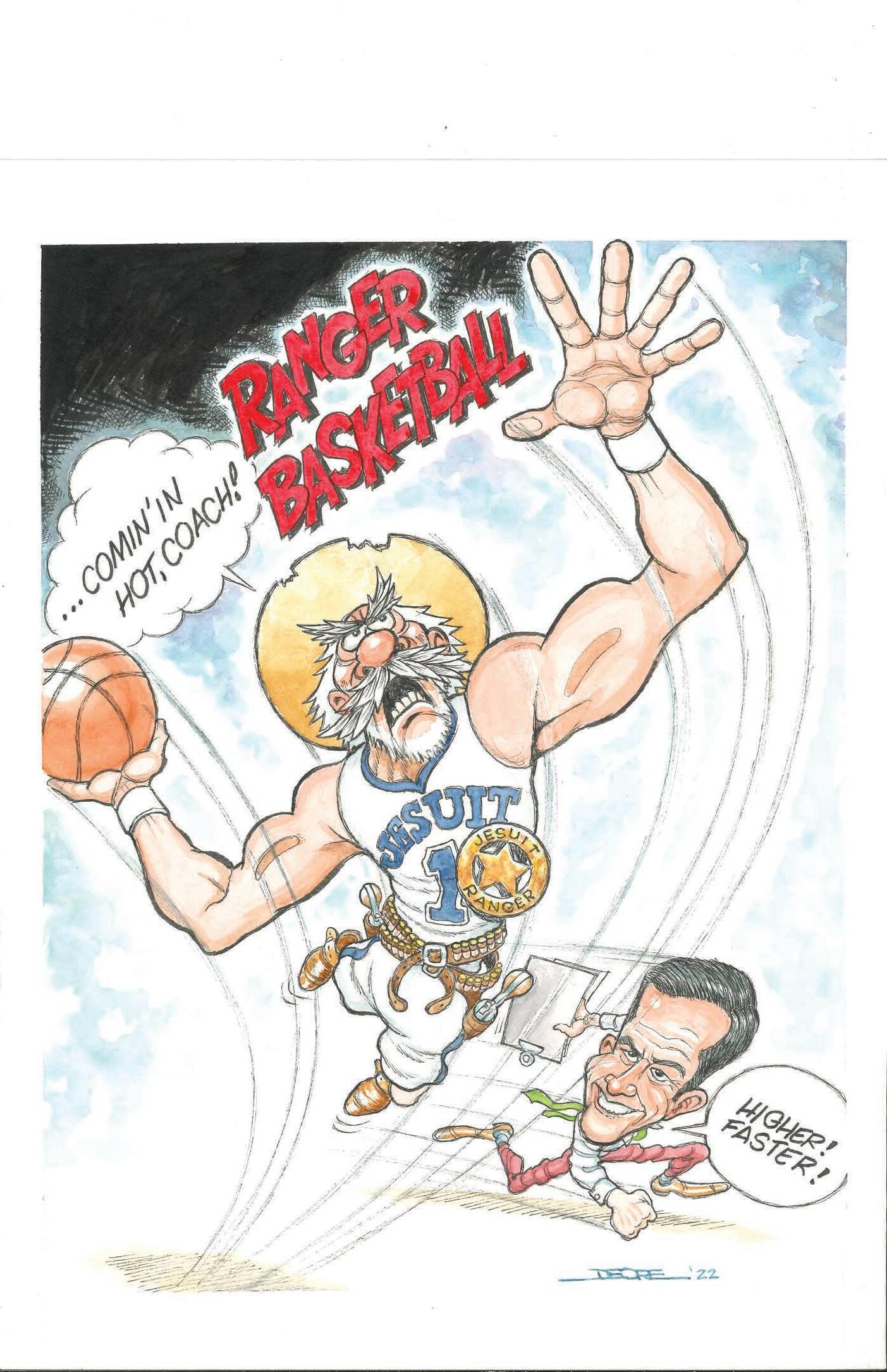 For many years, Bill DeOre ’65 has produced the artwork for the Jesuit Dallas athletic programs. An award-winning and nationally-syndicated editorial cartoonist for The Dallas Morning News for 34 years, DeOre is a member of the American Association of Editorial Cartoonists. DeOre has been an active member of the alumni community and is an emeritus member on the Jesuit Dallas Museum Board of Trustees.