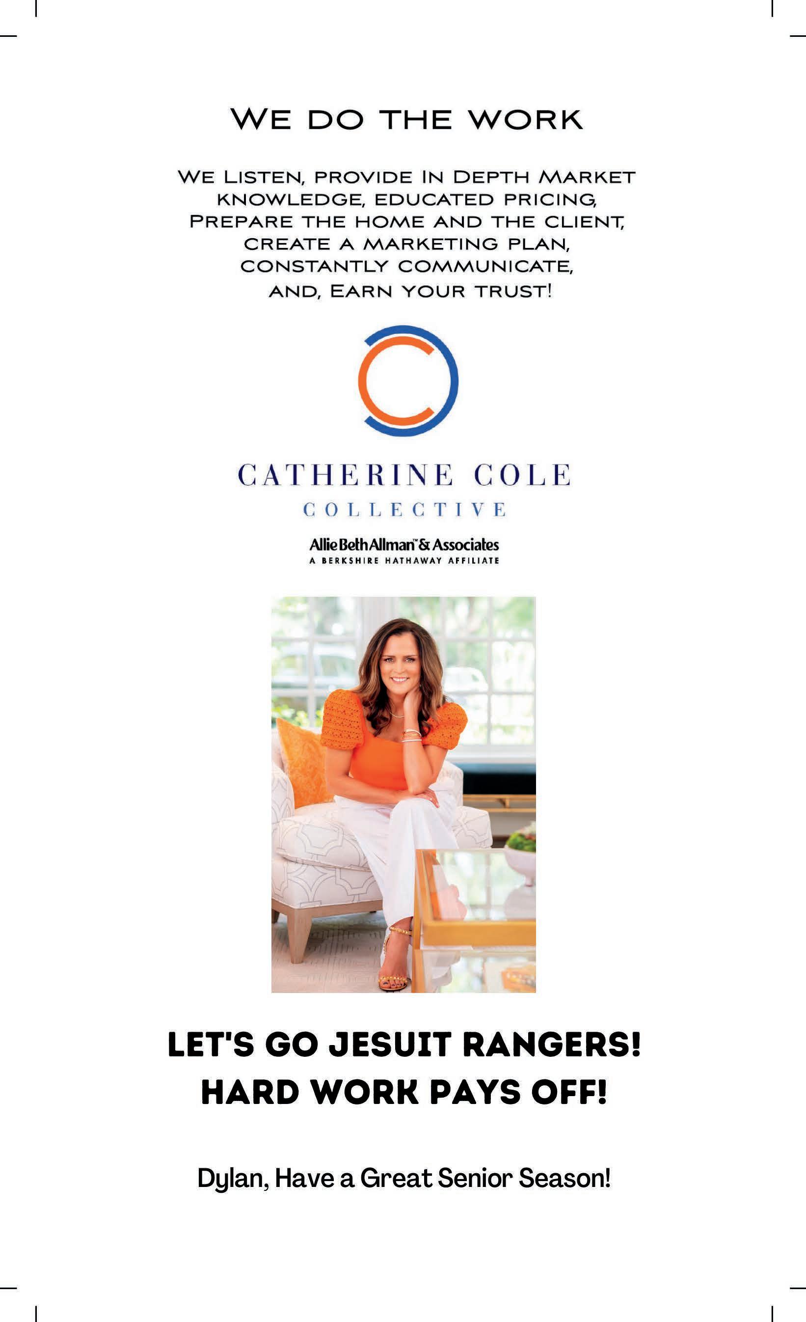 66 • 2022-23 JESUIT DALLAS BASKETBALL PALMER REALTY GROUP www.capleandcompany.com BRETT PALMER REALTOR It's your move - let's make the right one for you 214.797.4000 PalmerRealtyGroup@Outlook.com Brokerage: Caple & Company BUYING OR SELLING? Experience the unique customization that comes with working with a boutique firm - where the culture is centered around outstanding service, professionalism and dedicated representation that truly goes beyond your expectations. It's just a bonus that we always have a good time.