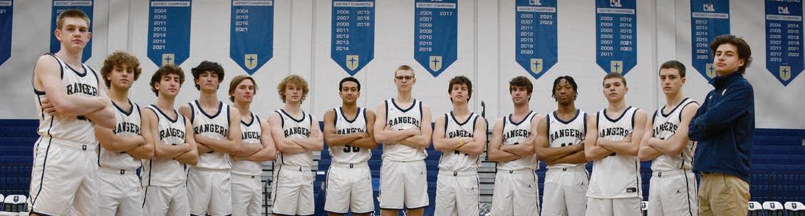 Last season, Jesuit Dallas earned the 13th playoff appearance in Hill’s 14 seasons, closing out the 202122 campaign with a 16-14 record alongside a 10-4 mark in district play. A trio of Rangers were named to the all-district team, as Ben Johnson ’22 and Ryan McCormick ’22 were named to the first team while Sky Tschurr ’22 secured an all-district second team honor. Hill made history on Jan. 25, 2022, when the Rangers defeated J.J. Pearce, 51-48. The win marked the 300th coaching victory for Coach Hill.