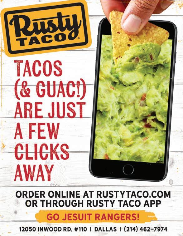 2022-23 JESUIT DALLAS BASKETBALL • 65 • Residential Roofing • Roof Restoration & Repair • Commercial Roofing • Roof Replacement • Multifamily Roofing • Roof Inspection JESUIT ALUMNI, CLASS OF 2011 214-233-6210 3010 LBJ Freeway, Suite 1200, #403 Dallas, TX 75234 CONTACT US TODAY! www.rockmoorroofing.com