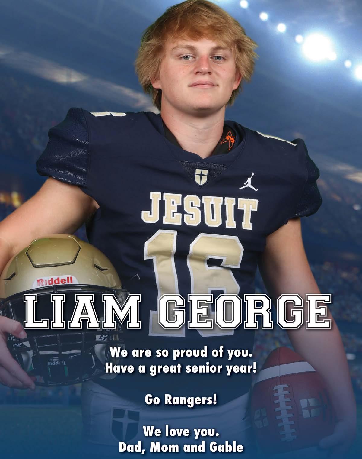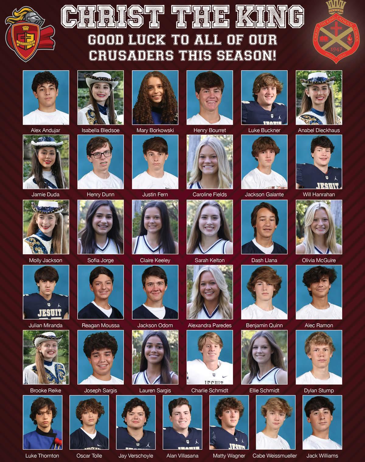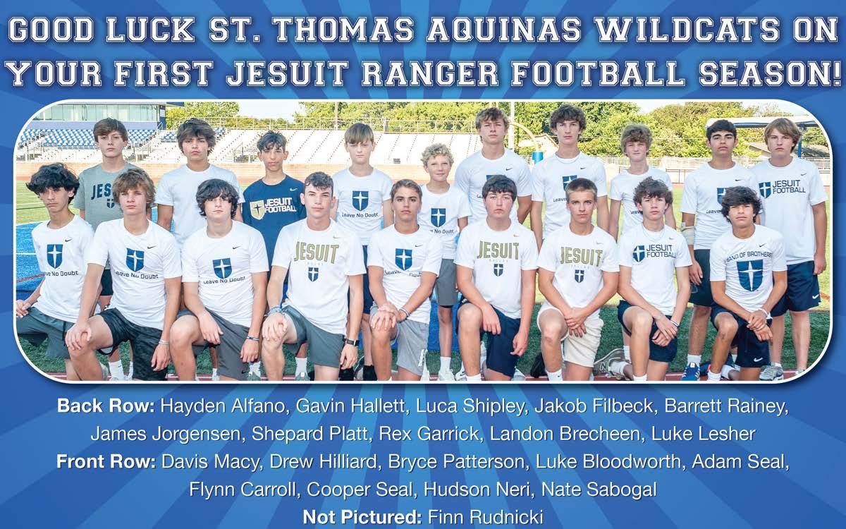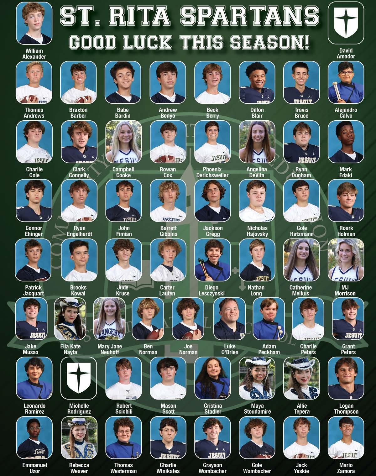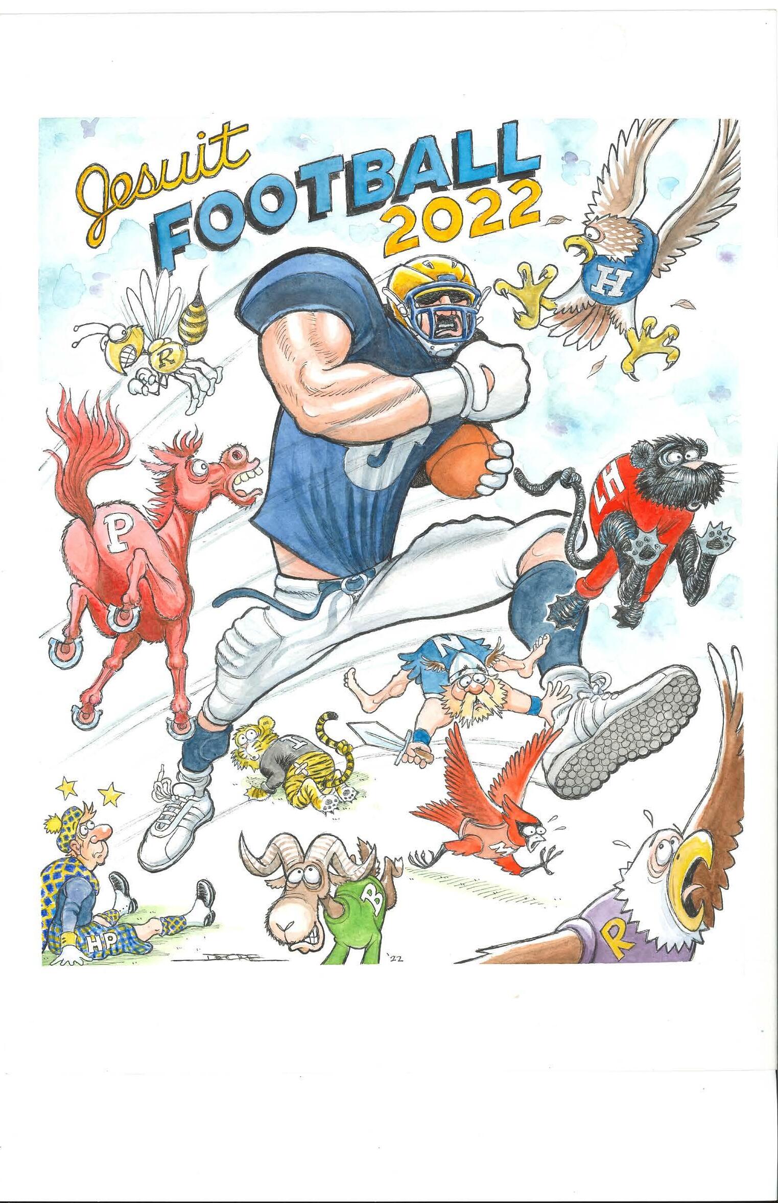 The 2022 Jesuit Dallas Football Program is a production of the Jesuit Dallas Sports Information Office. Program Designer: Bryan Montgomery, Sports Information Director. Editorial Team: Aimee French, Heather Holman, James Kramer, Candice Price. Photography: Jowdy Photography (Football Action Photography), Legacy Studios (Football, Band Photography), Francis Celii Photography (Football Action Photography), Lisa Manis Crenshaw Photography (Rangerettes Photography), Kendra Sawyer (Cheerleader Photography). Printer: Cultro Group.