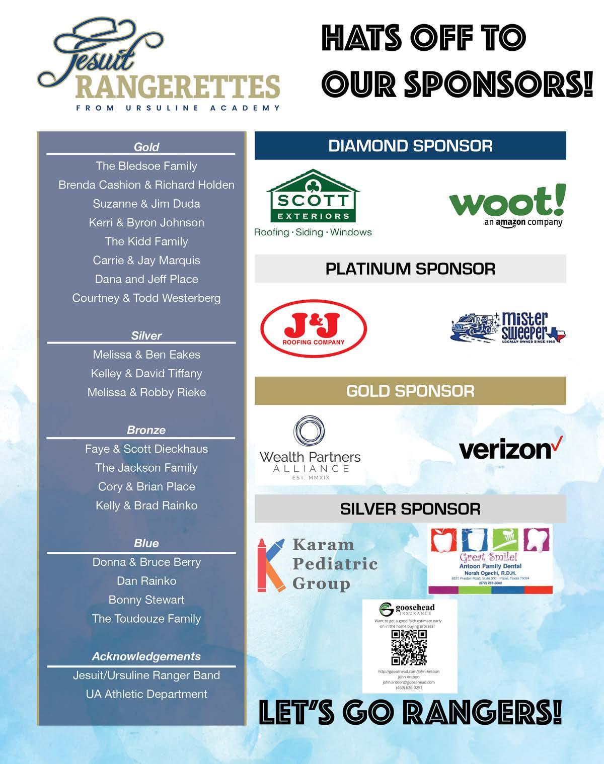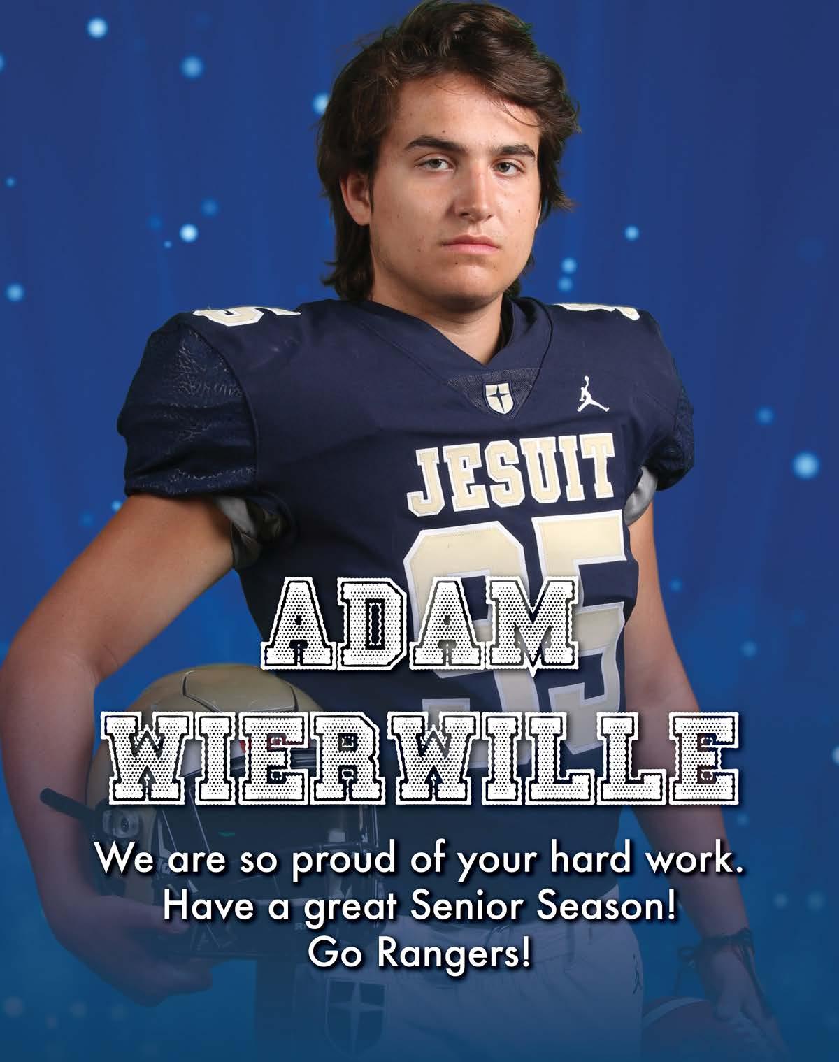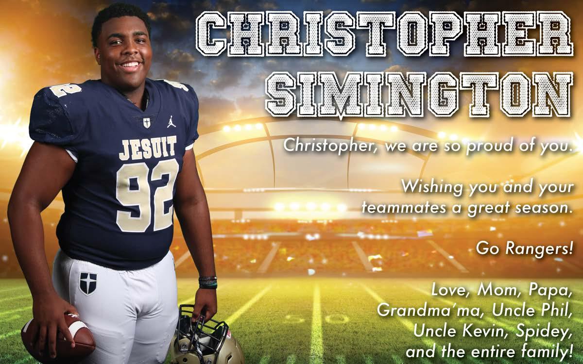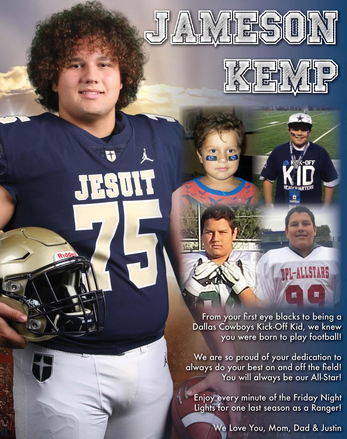 The 2022 Jesuit Dallas Football Program is a production of the Jesuit Dallas Sports Information Office. Program Designer: Bryan Montgomery, Sports Information Director. Editorial Team: Aimee French, Heather Holman, James Kramer, Candice Price. Photography: Jowdy Photography (Football Action Photography), Legacy Studios (Football, Band Photography), Francis Celii Photography (Football Action Photography), Lisa Manis Crenshaw Photography (Rangerettes Photography), Kendra Sawyer (Cheerleader Photography). Printer: Cultro Group.