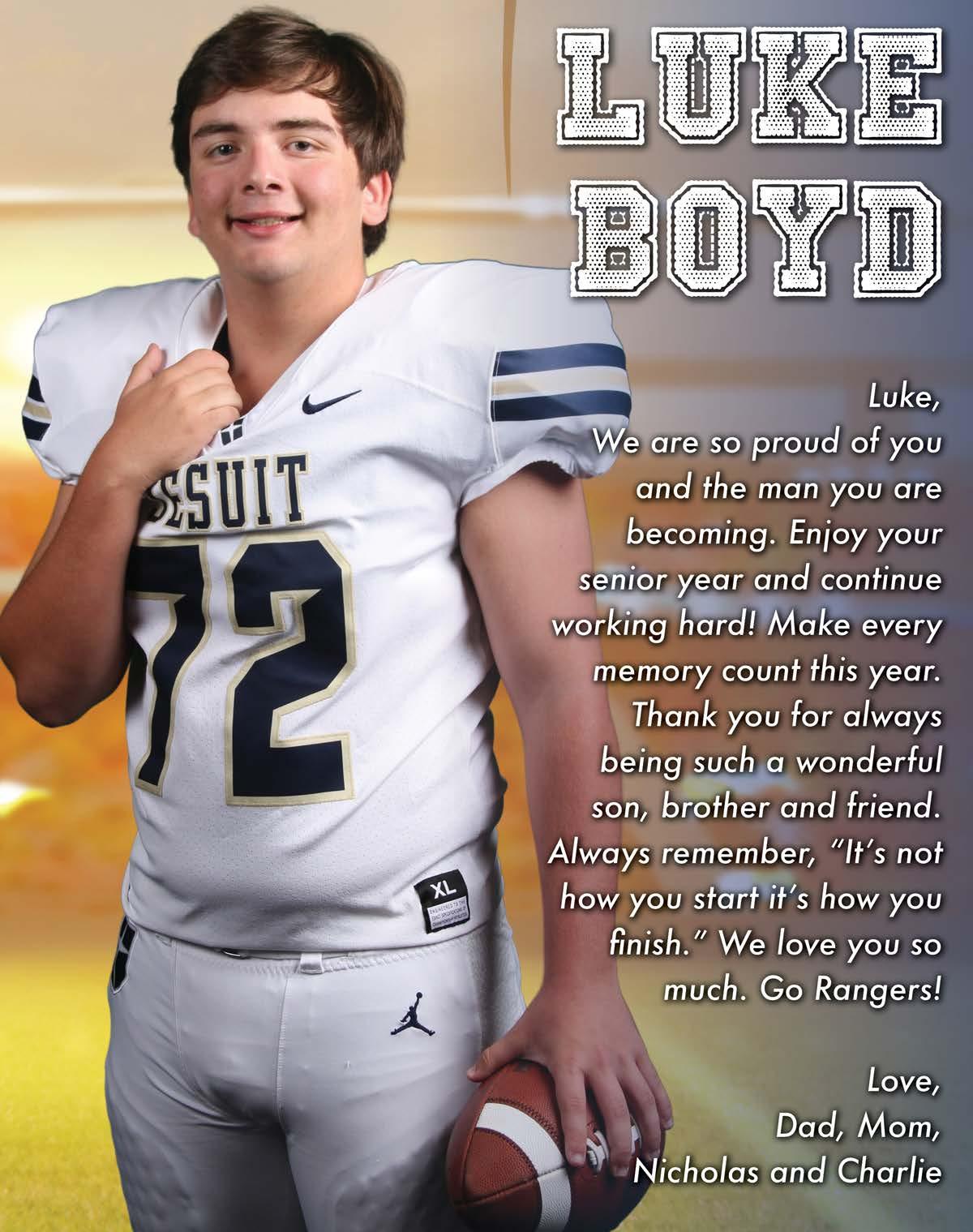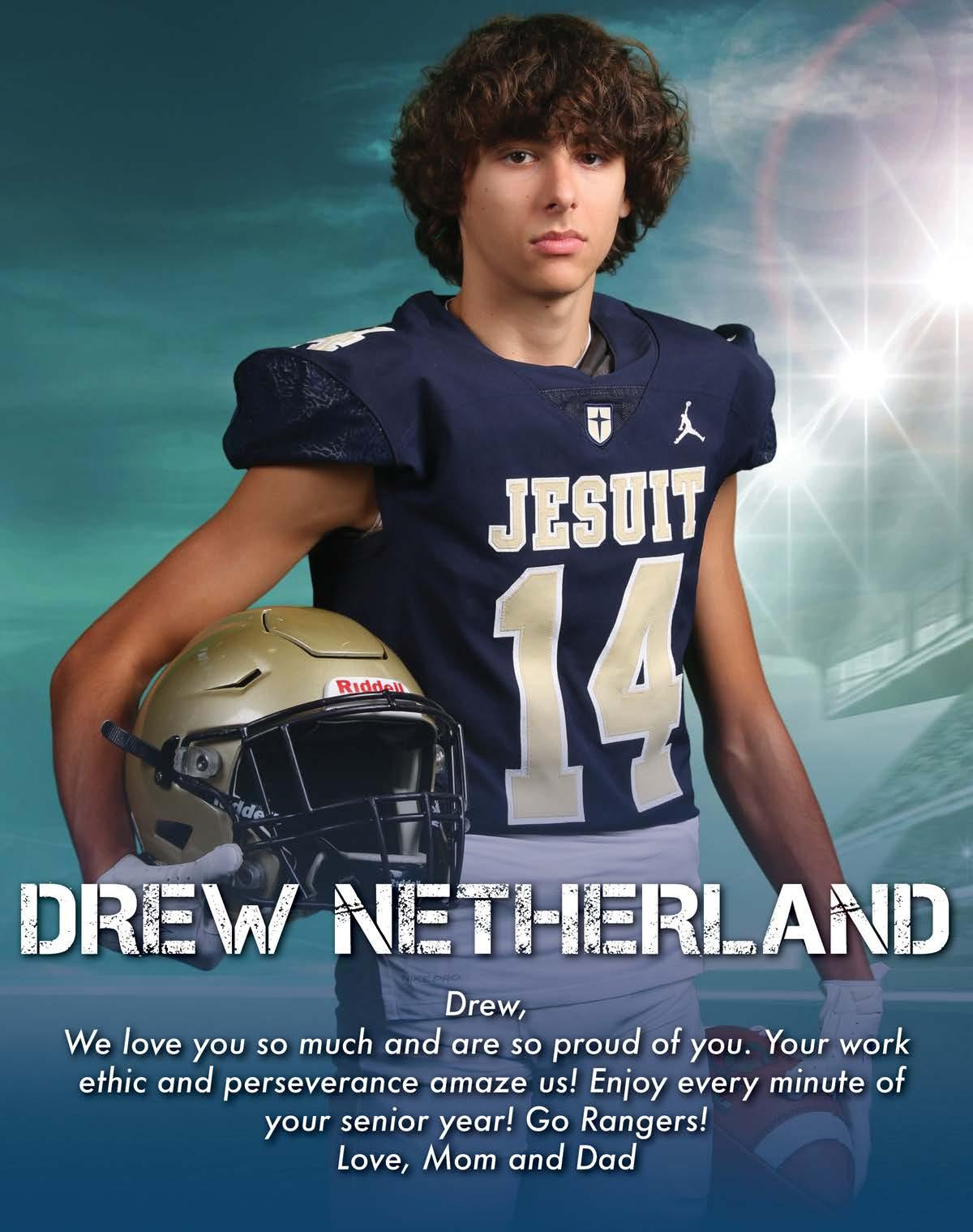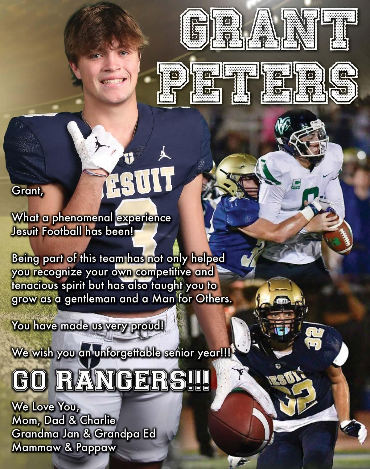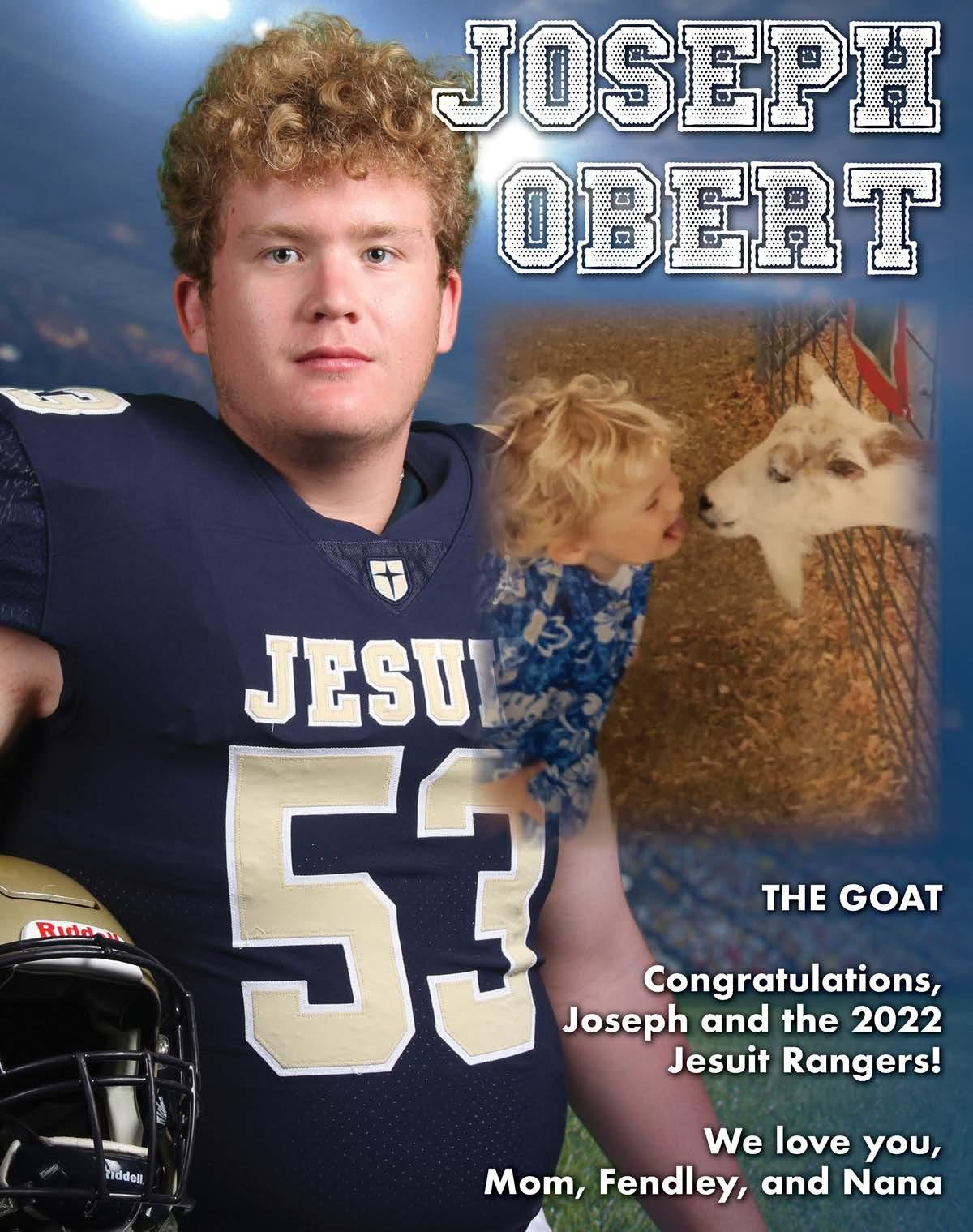The 2022 Jesuit Dallas Football Program is a production of the Jesuit Dallas Sports Information Office. Program Designer: Bryan Montgomery, Sports Information Director. Editorial Team: Aimee French, Heather Holman, James Kramer, Candice Price. Photography: Jowdy Photography (Football Action Photography), Legacy Studios (Football, Band Photography), Francis Celii Photography (Football Action Photography), Lisa Manis Crenshaw Photography (Rangerettes Photography), Kendra Sawyer (Cheerleader Photography). Printer: Cultro Group.