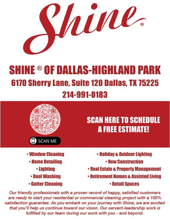 Absolute Merit Roofing 29 Andrea Nayfa & Christine McKenny - Allie Beth Allman & Associates . 129 Ben-E-Keith 97 BK Real Estate Group 101 Brett Palmer, Realtor 167 Campisi’s Restaurants 63 Carrell Clinic, The 39 Chick-Fil-A Inwood 60 ComServ Construction, LLC 103 Crossbuck BBQ 151 Cultro Group 30 DeGroote Partners ..........................................................................79 Down Syndrome Guild of Dallas 11 Enchilada’s 142 Elan Inwood ...................................................................................141 FastSigns 136 Francis Celii Photography 97 Godat Plastic Surgery .....................................................................82 Gordon Highlander 22 Inwood Donuts 136 Jason Saucedo, Class of 2001 35 Jersey Mike’s 108 Jimmy John’s 30 Jonathan Alexander Basketball 104 Judy Nordseth Photography ...........................................................82 Kwik Kar on Inwood 30 Law Offices of Danny Clancy ’83 & Tim Clancy ’95 139 Legacy Studios ................................................................................56 Macklin’s Catering Co. 10 Manorly Home Concierge Services .................................................84 Messick Peacock and Associates 59 Midway Hollow Pet Clinic 142 Munck Wilson Mandala, LLP 15 Musso Family Dentistry Back Cover Park Place Motor Dealership 42 Plaza at Preston Center 74 Preston Art 103 Prestonwood Polo & Country Club 18 Raising Cane’s Chicken Fingers 56 Ramirez & Associates, PC ...............................................................95 Rockmoor Roofing 19 Rodenbaugh’s Flooring America 67 RPC Staffing ....................................................................................51 Rusty Taco 92 Seeligson & Company PC 109 Shine of Dallas - Highland Park .......................................................92 Spring Creek Barbeque 73 Stewart and Arango Oral Surgery Inside Front Cover Taco Joint 70 Team Sports & Performance Apparel 79 Texas Catering 120 Veritex Community Bank 12 WWA Integrated Wealth Strategy Group ...........................................7 Wingstop 119 Whitney Barsalou - SWBC Mortgage 79