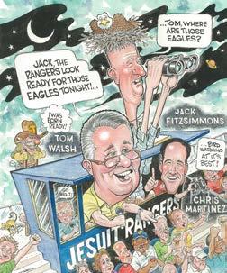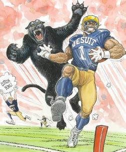 For many years, Bill DeOre ’65 has produced the artwork for the Jesuit Dallas football programs. An award-winning and nationally-syndicated editorial cartoonist for The Dallas Morning News for 34 years, DeOre is a member of the American Association of Editorial Cartoonists. DeOre has been an active member of the alumni community and is an emeritus member on the Jesuit Dallas Museum Board of Trustees.