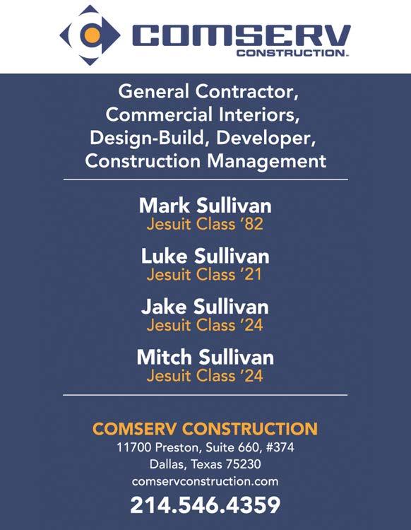 2022 JESUIT DALLAS FOOTBALL • LEAVE NO DOUBT • 171 GET YOUR “J’s” UP The Jesuit Alumni Association proudly supports our Jesuit Rangers For ways to get involved and stay connected, contact Sean McMullen ’96 smcmullen@jesuitcp.org or 972-387-8700 x342 @JesuitAlums Jesuit Rangers @jesuitalums Jesuit Dallas Alumni