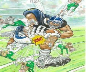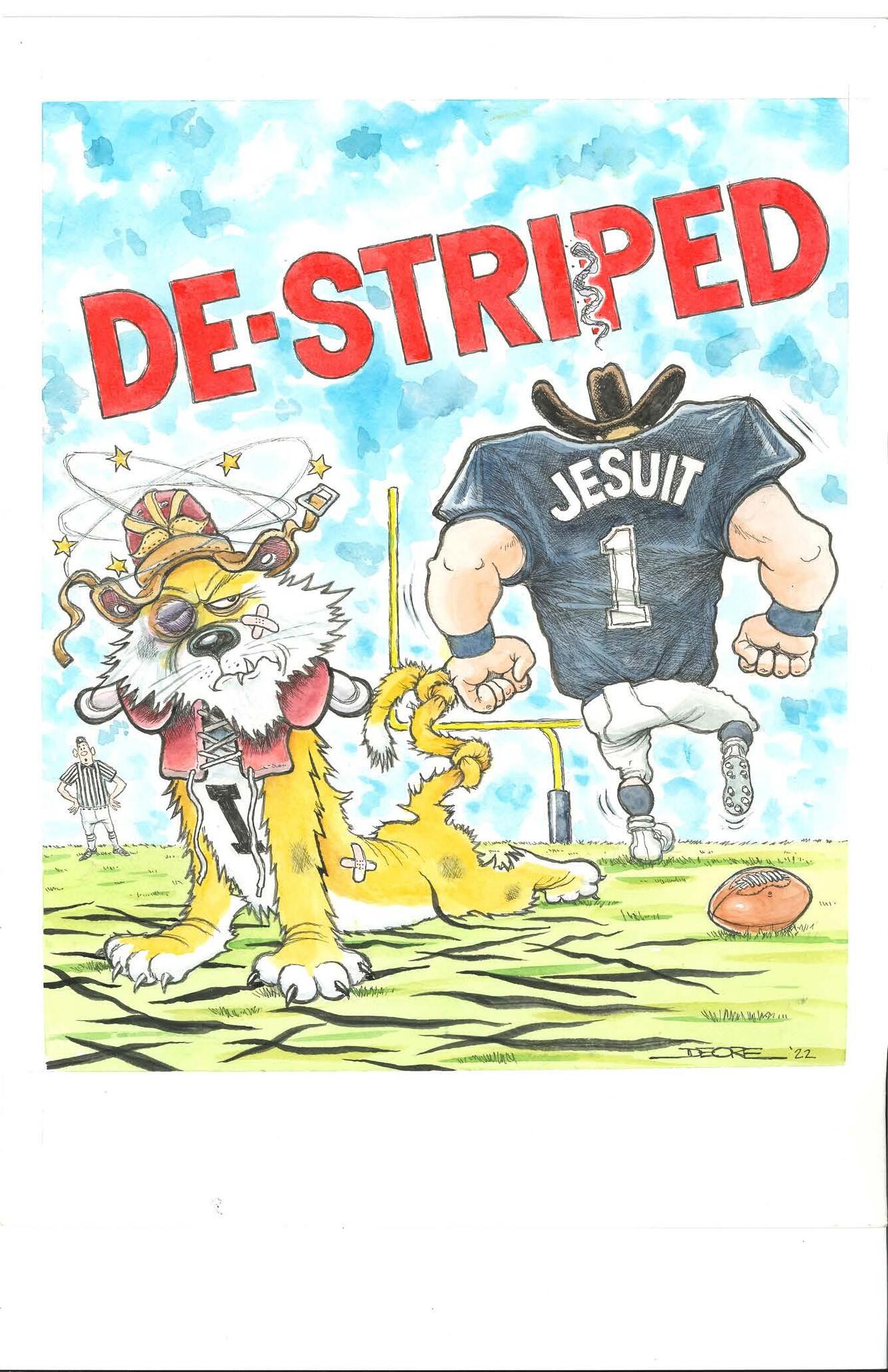 Throughout his time serving Jesuit Dallas athletics, DeOre has provided artwork for several Jesuit Dallas football milestones. Here are a few examples of Bill’s work over the years: