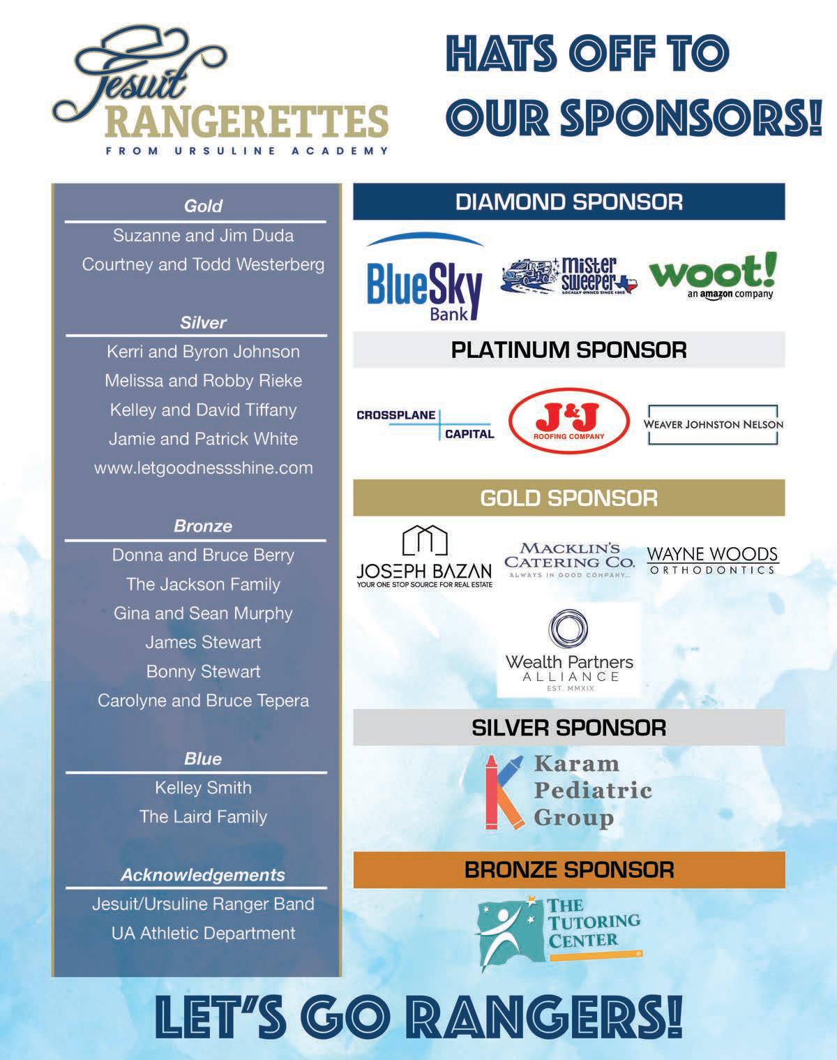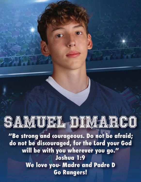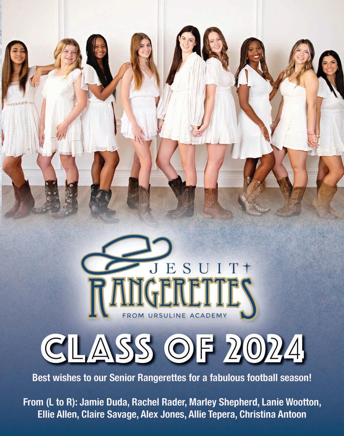 Advertiser Index 4 Program Credits 4 Administration & Support Staff 4 About Jesuit Dallas 5 Head Coach Brandon Hickman 6 Jesuit Dallas Program History 8-9 Coach Hickman: Quest for 100 Wins 10 Assistant Coaching Staff 12-16 Dell Performance Center 18 Jesuit Dallas Athletic Training 21 Varsity Position Groups 24-27 Class of 2024 Player Profiles 32-45 Varsity Football Roster 74 Varsity Football Schedule 75 Varsity Football Student-Athletes 76-79 Junior Varsity Roster 82 Junior Varsity Football Schedule 83 Junior Varsity Football Student-Athletes 84-86 Freshman Football Roster 92 Freshman Football Schedule 93 Freshman Football Student-Athletes.......97-103 Jesuit Dallas Rangerettes 105-124 Jesuit Dallas Cheerleading 127-138 Jesuit-Ursuline Ranger Band 141-146