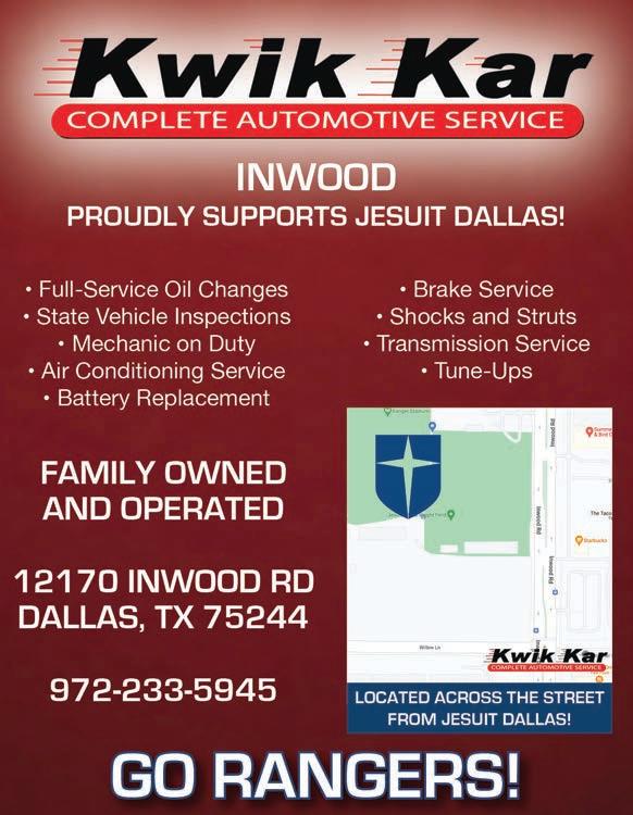 2 • JESUIT DALLAS FOOTBALL • FEAR NOTHING sao ral su r ge o ns. com 214 -2 69- 12 44 8611 Hi ll crest Rd., S uite 235 | Dall as , T X 75225 DR. A RAN GO o e rs a special d iscoun t t o all Jesuit a nd Ursul ine stud e nts a nd rece nt al umni WE O FF ER A N ON -OP IOID PA IN M ANAGE MEN T PLA N FOR THE RE CO VER Y F RO M WI S DOM T EET H R EMOVA L, D ENTAL IMPL AN TS , TMJ DIS O RD ERS A ND OTH ER ORA L SURGI C AL PROCEDURE S A NDR E W ARA NGO , D DS , M D, FACS Jes uit Class o f 200 5 & JO HN-MICH A EL STEWART, D MD B oa rd Certi e d Oral & Max illofa c ial S urgeon s PR OUDLY SUPPOR T THE J ESU I T RAN GERS THE RANG ERETTES THE J ESUIT URSU LIN E RA NGER B AN D