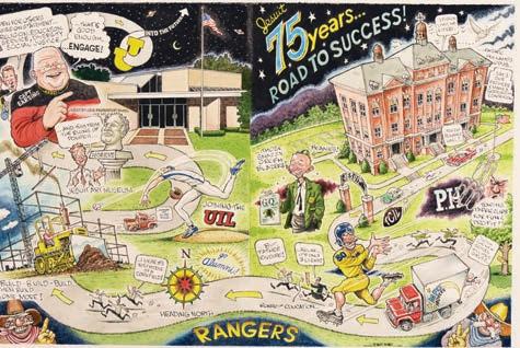 Pictured: (Right): A cover designed by DeOre for the 2017 Winter edition of the Jesuit Today celebrating the 75th anniversary of Jesuit Dallas. (Below): Select fan guide and game program covers from recent seasons.