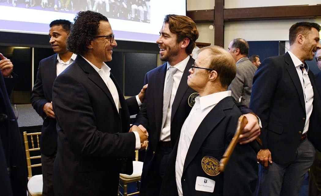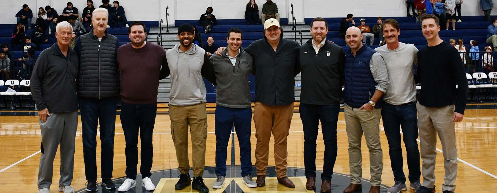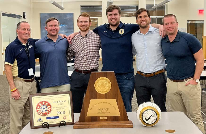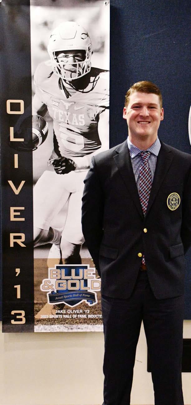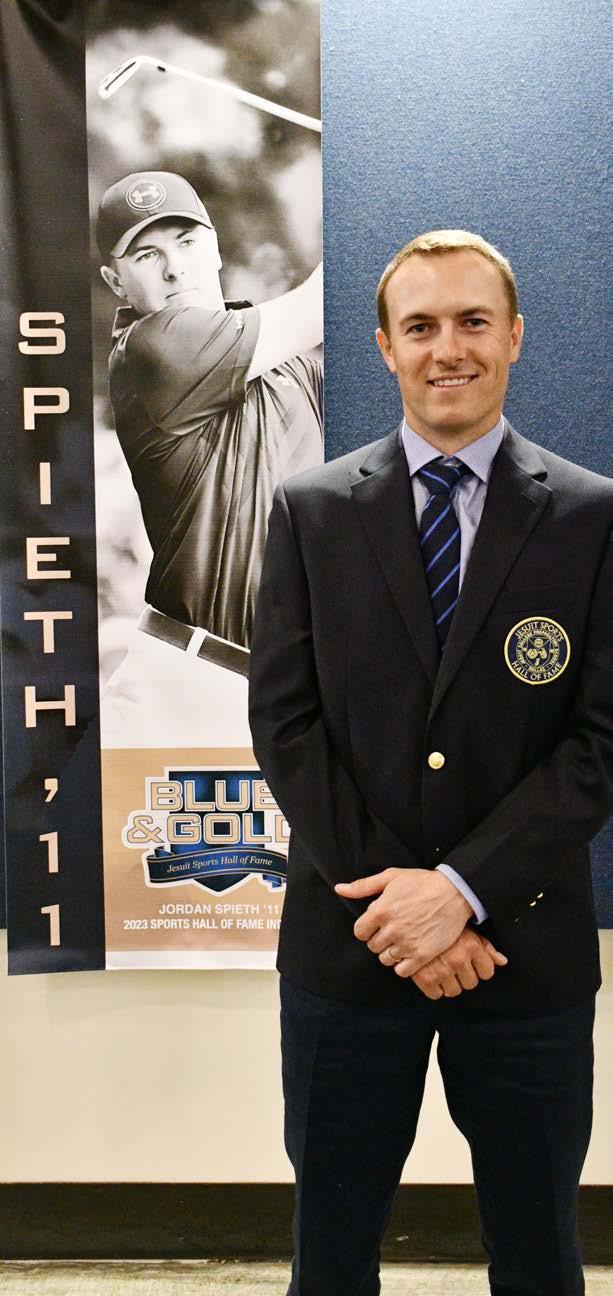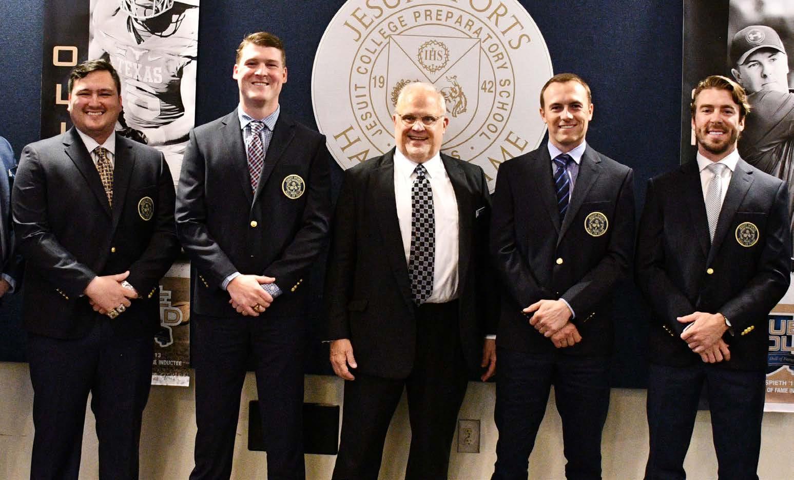 President Earsing with the newest inductees of the Jesuit Dallas Sports Hall of Fame (L-R): Dan Morris ’13, Jake Oliver ’13, Jordan Spieth ’11, and Brian Wetzel ’11. See page 28.
