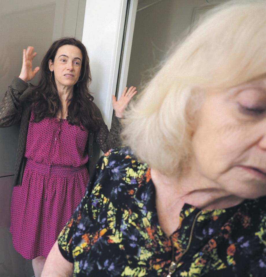 Above: Lucy (left) died in hospital two days after the attack which killed her daughters Rina (centre) and Maia Dee. Main image: Lucy’s husband, Rabbi Leo Dee, embraces two of his three surviving children at their mother’s funeral