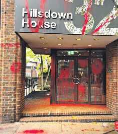 Images of smashed windows and red paint splattered over o ces used by a Jewish business and Israel advocacy organisation in Hamsptead and Hendon, and the word ‘Palestine’ partially sprayed on walls next to o ces on Hampstead High Street sparked anger and concern in the community.