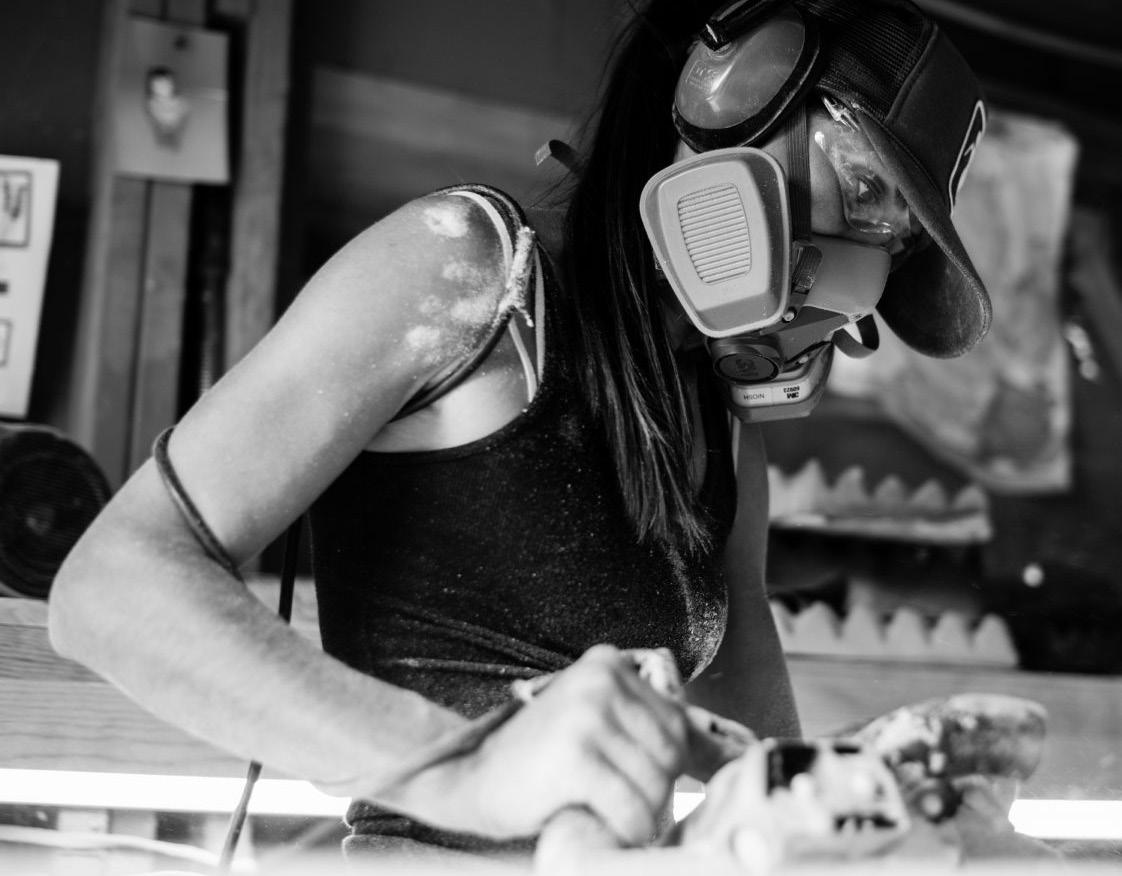 Surfboard building is unlike any other trade – there’s no formal training or trade schools. Hand shaping surfboards breeds a culture all its own, interconnecting generations with knowledge and tradition passed down from one to the next. Techniques are often unique to each shaper and refined over time, and eventually given to someone else to progress knowledge. Mentorships, which often spring from within intimate circles in shaping bays or sanding rooms, have mostly been a benefit of the guys-only club. It can be a tough one to break into.
