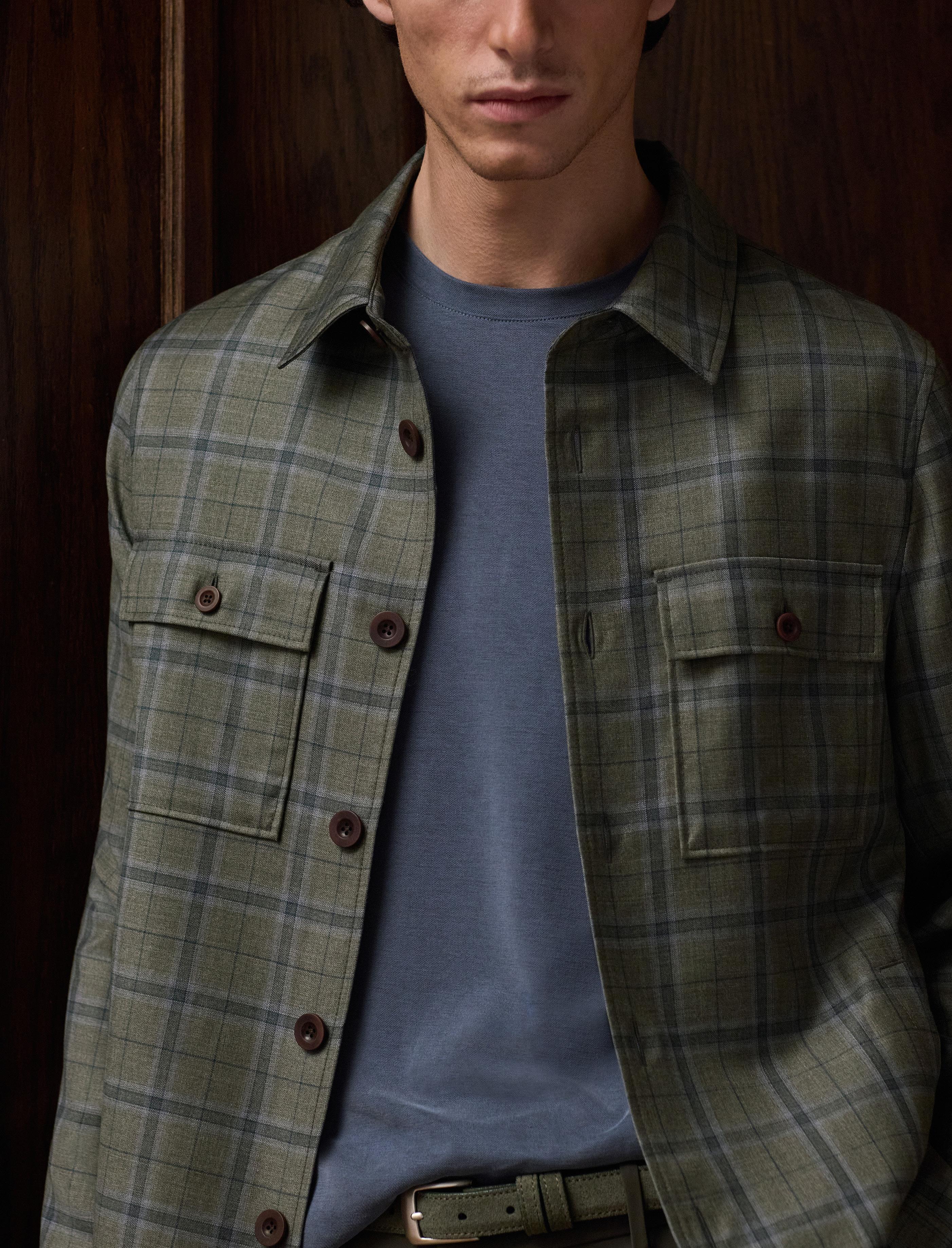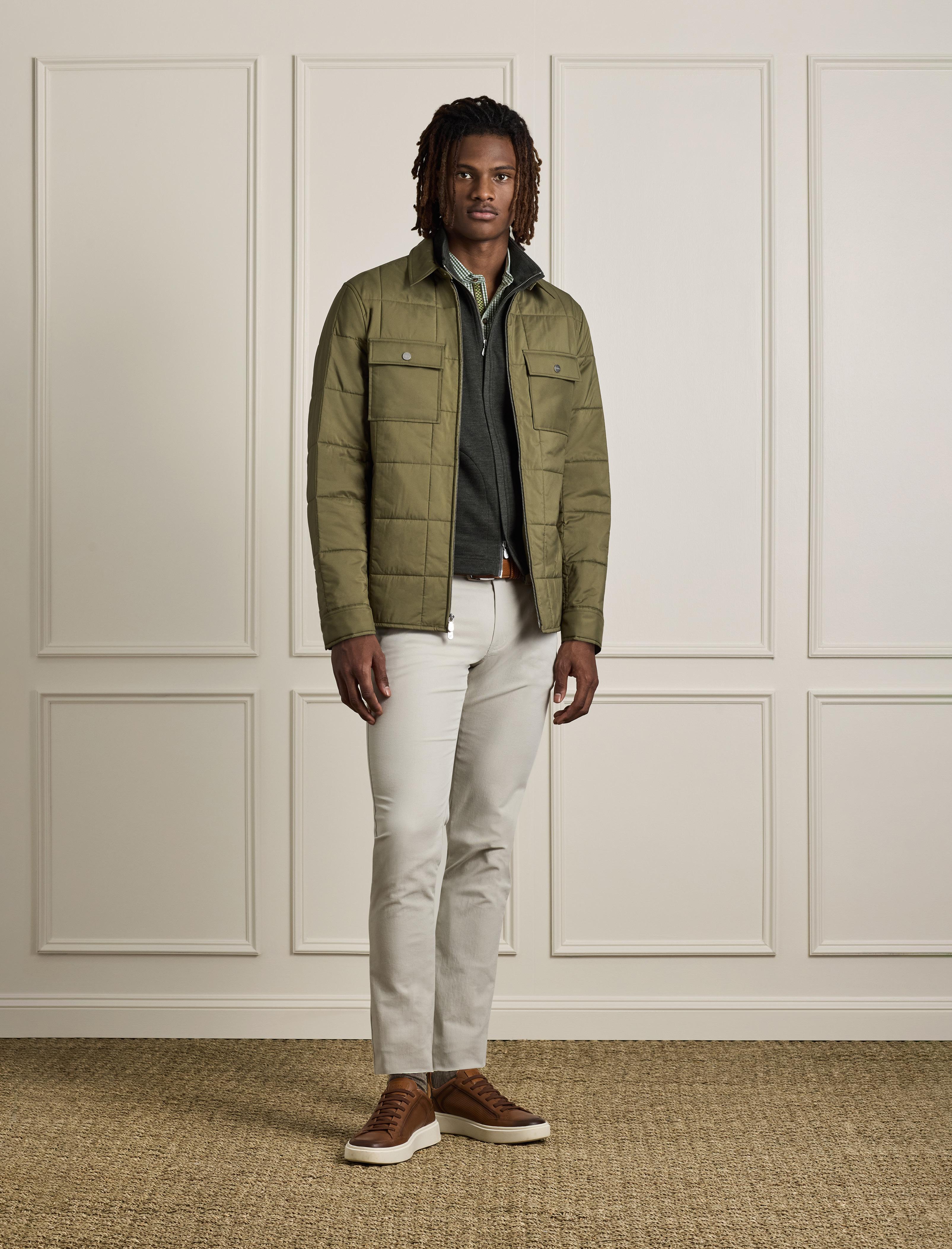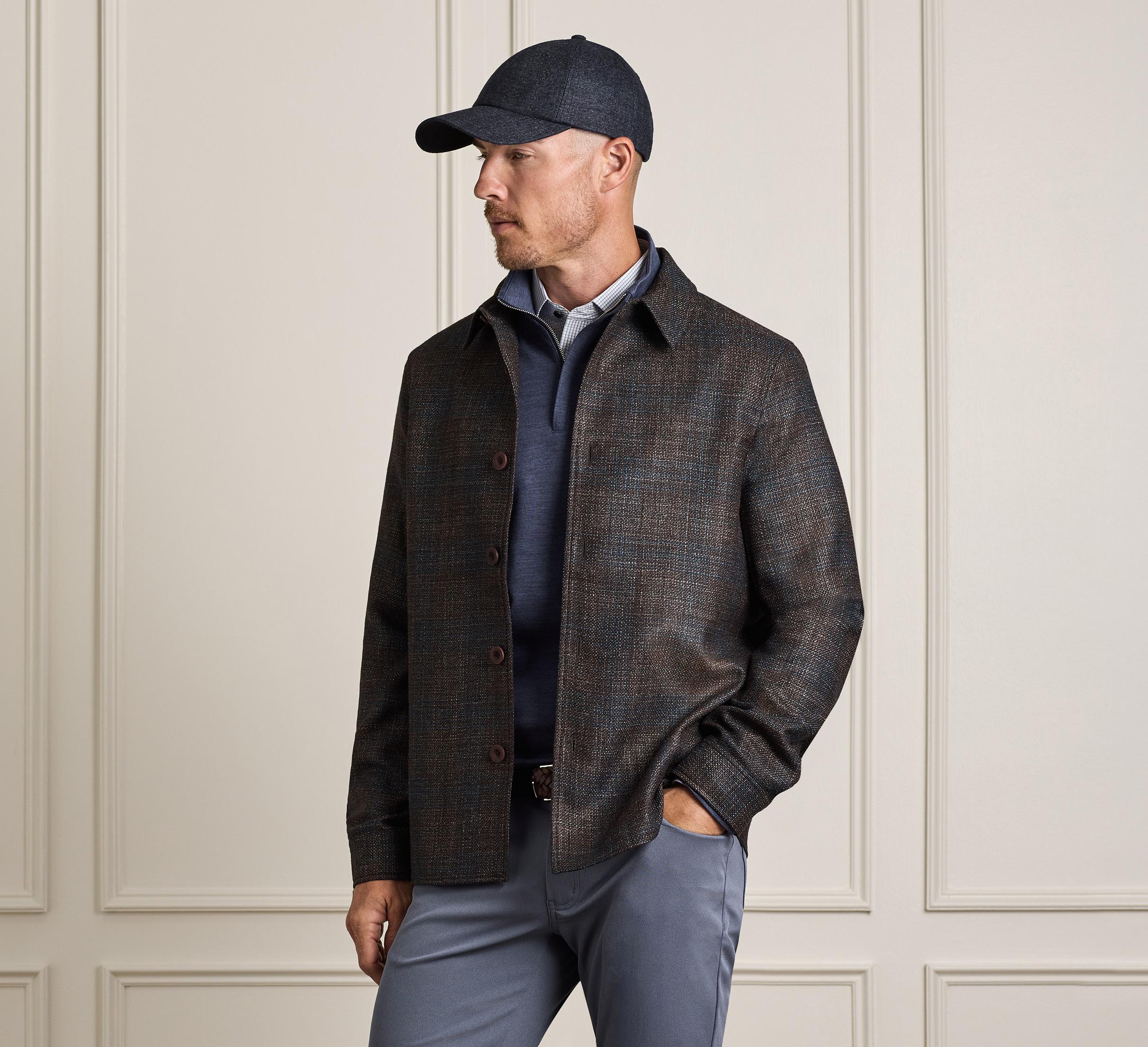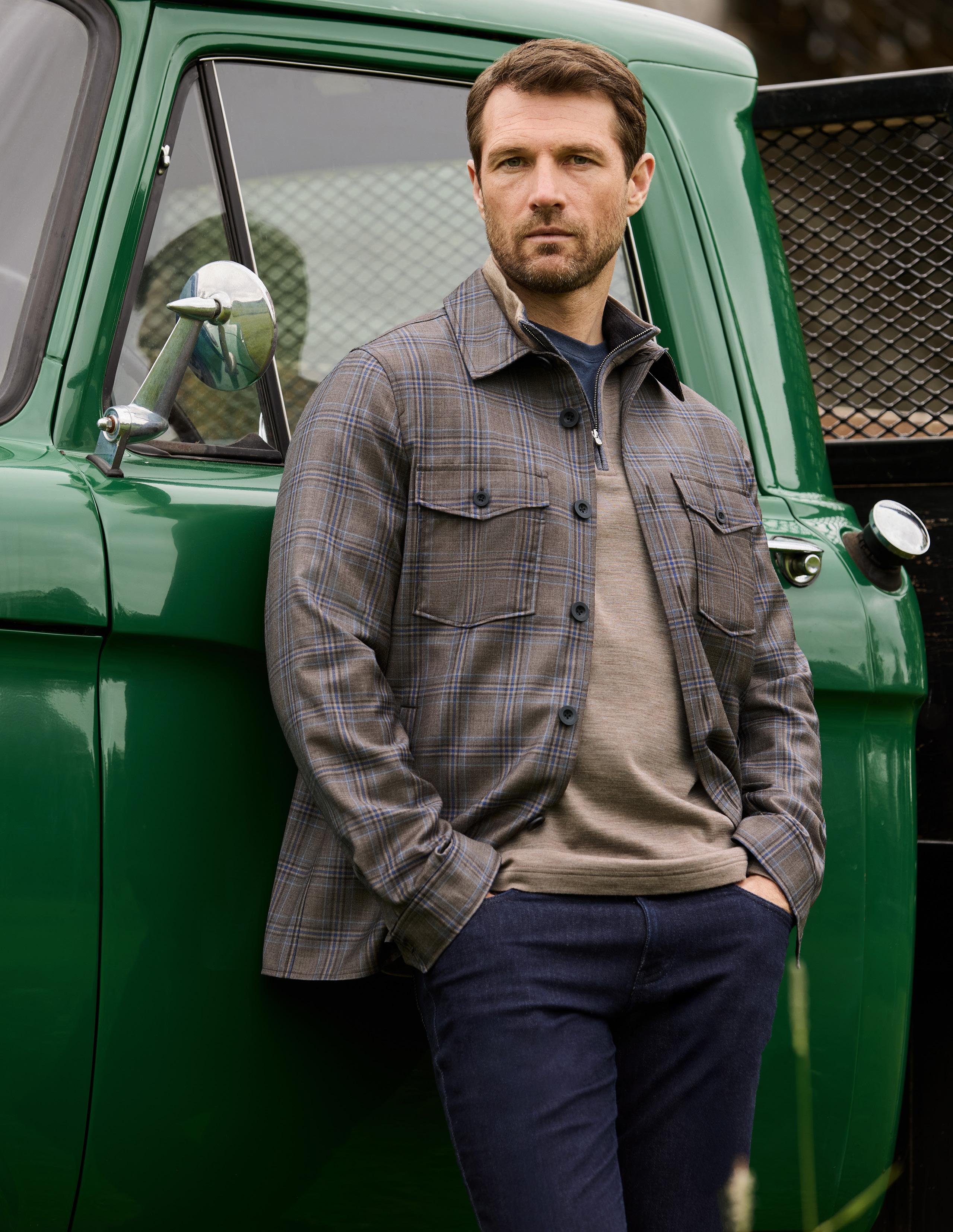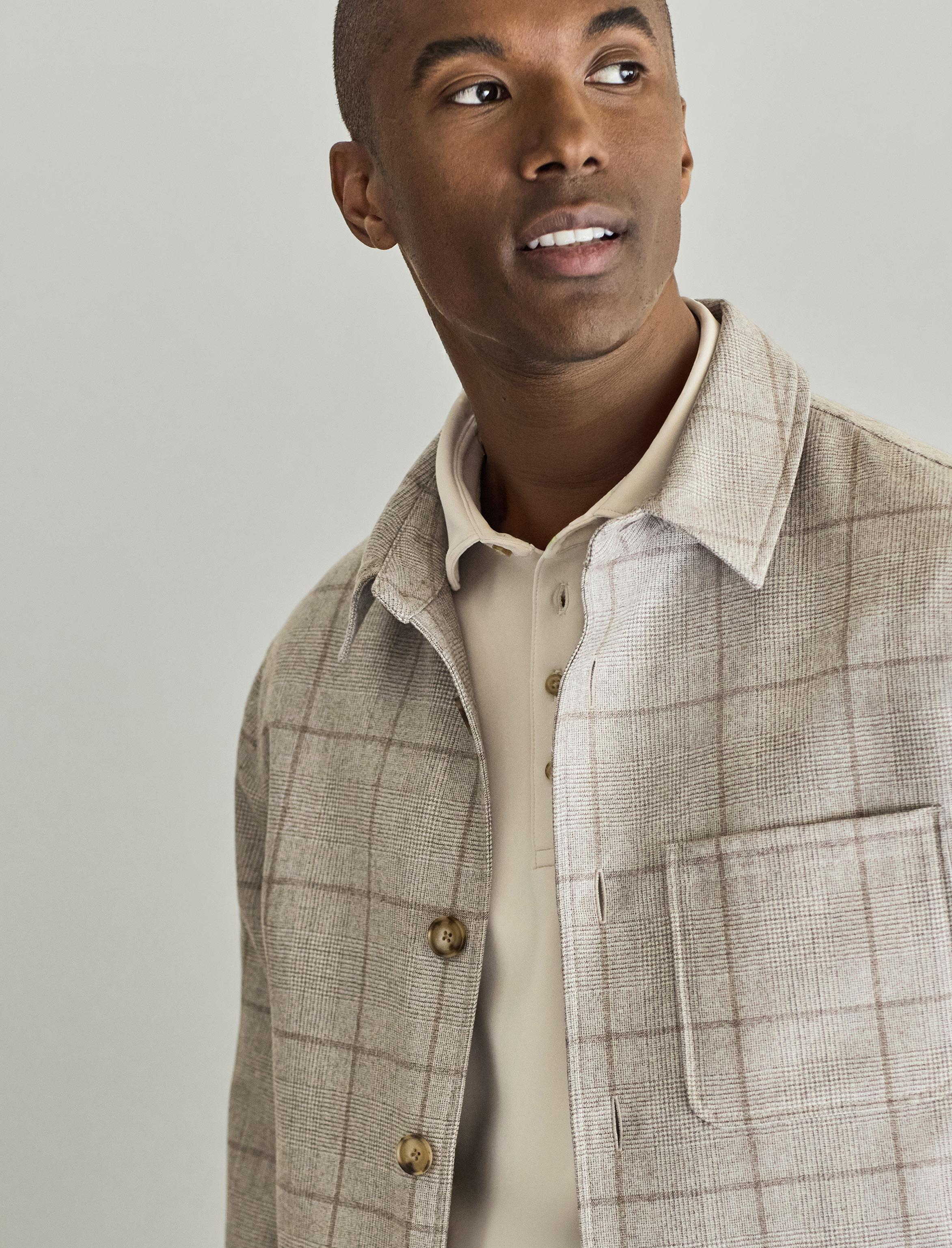 Our custom shirt jacket is an easy yet sophisticated transitional piece, blending elements of classic workwear and overshirt styles for a modern, versatile look. It features multiple pockets for convenient access to your essentials and is available in a wide range of suiting fabrics, as well as our lightweight, rain-resistant Eco-Tech fabric, including a quilted option.