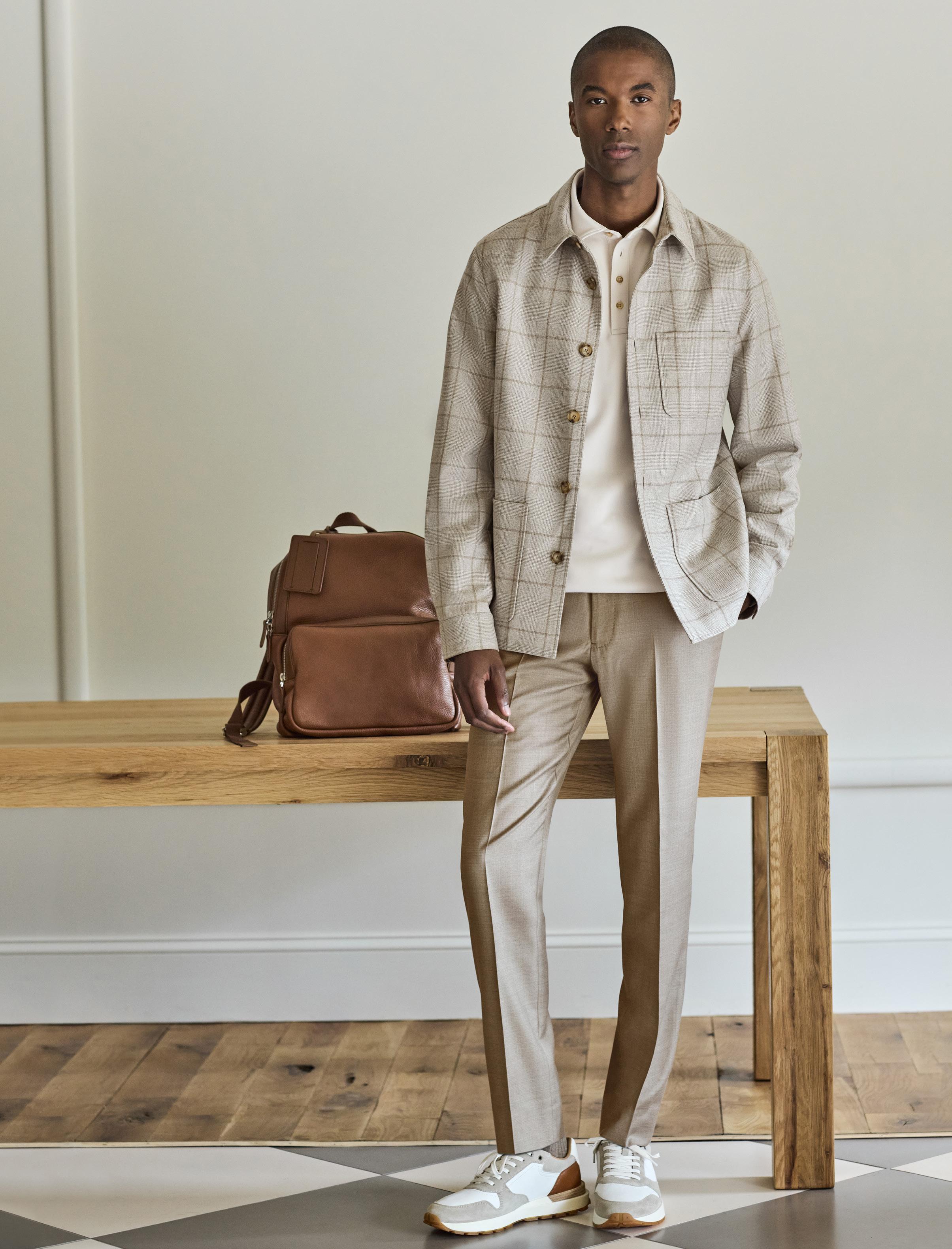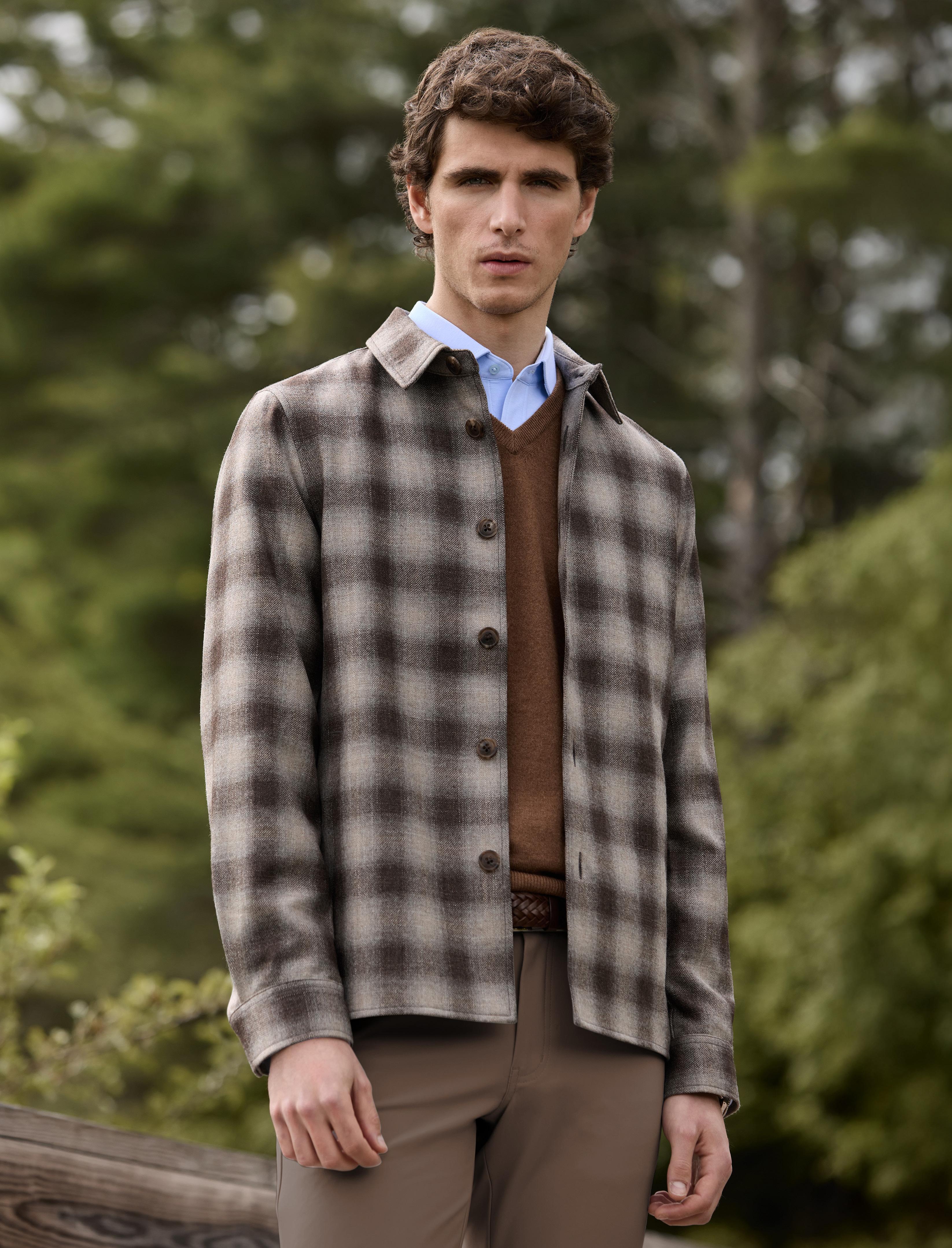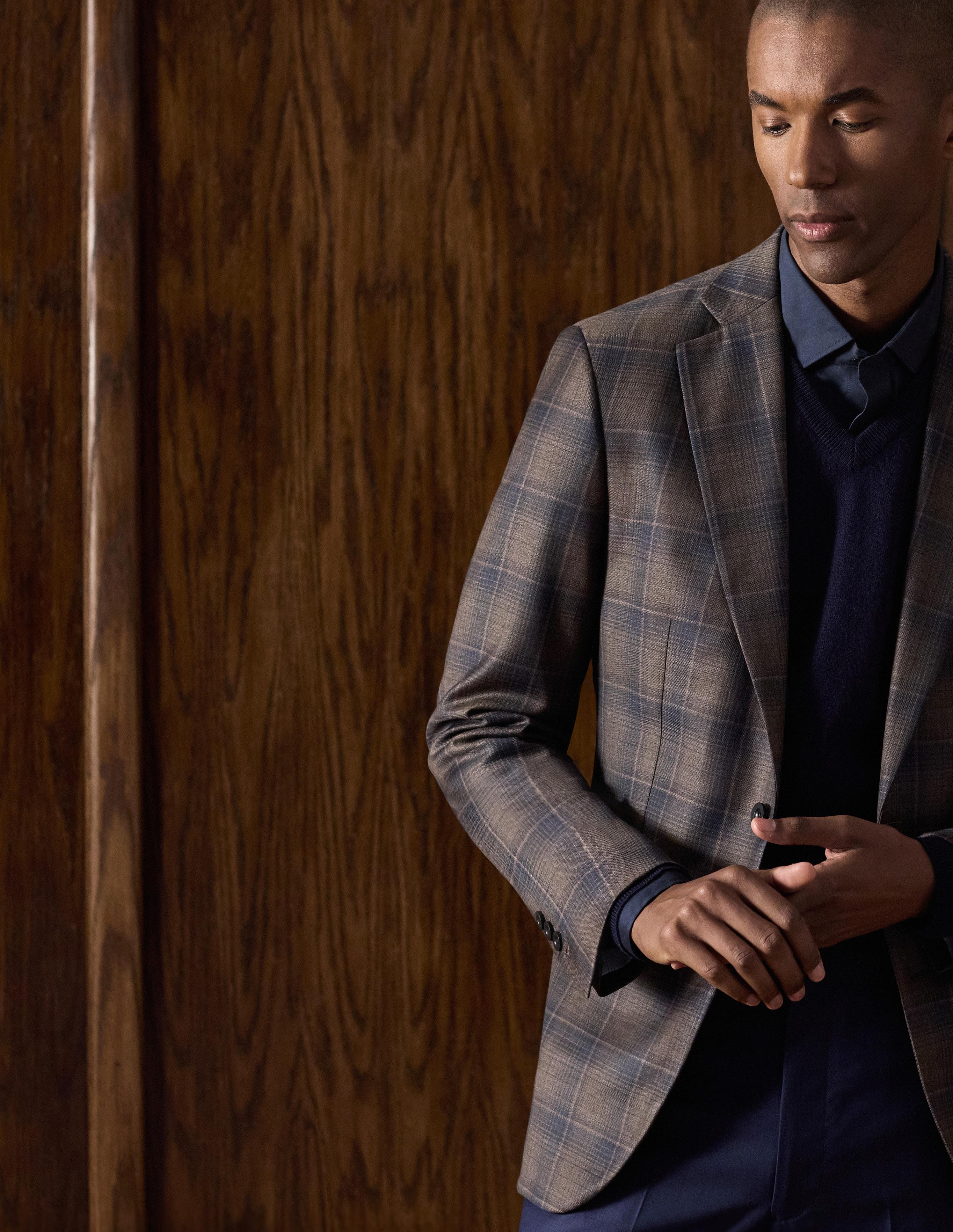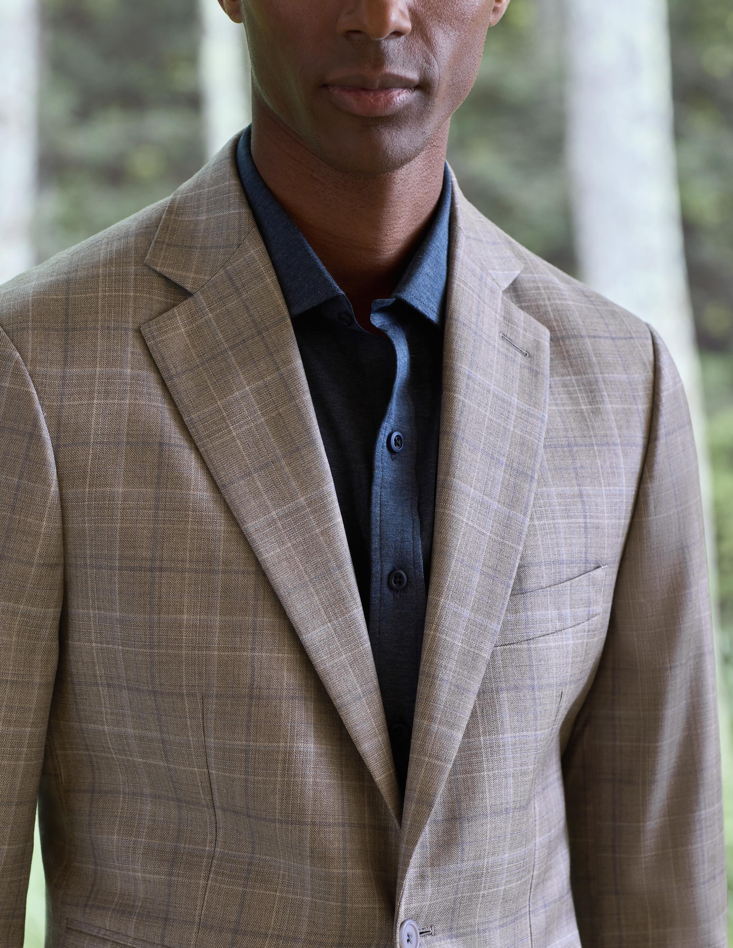 Our newly updated Windstopper sportcoat features a discreet button-inand-out design that allows you to easily add or remove a coordinating vest or hoodie insert for increased versatility and sophistication. Shown above in Taupe and Natural Trofeo Cashmere Plaid from Lanificio Ermenegildo Zegna.
