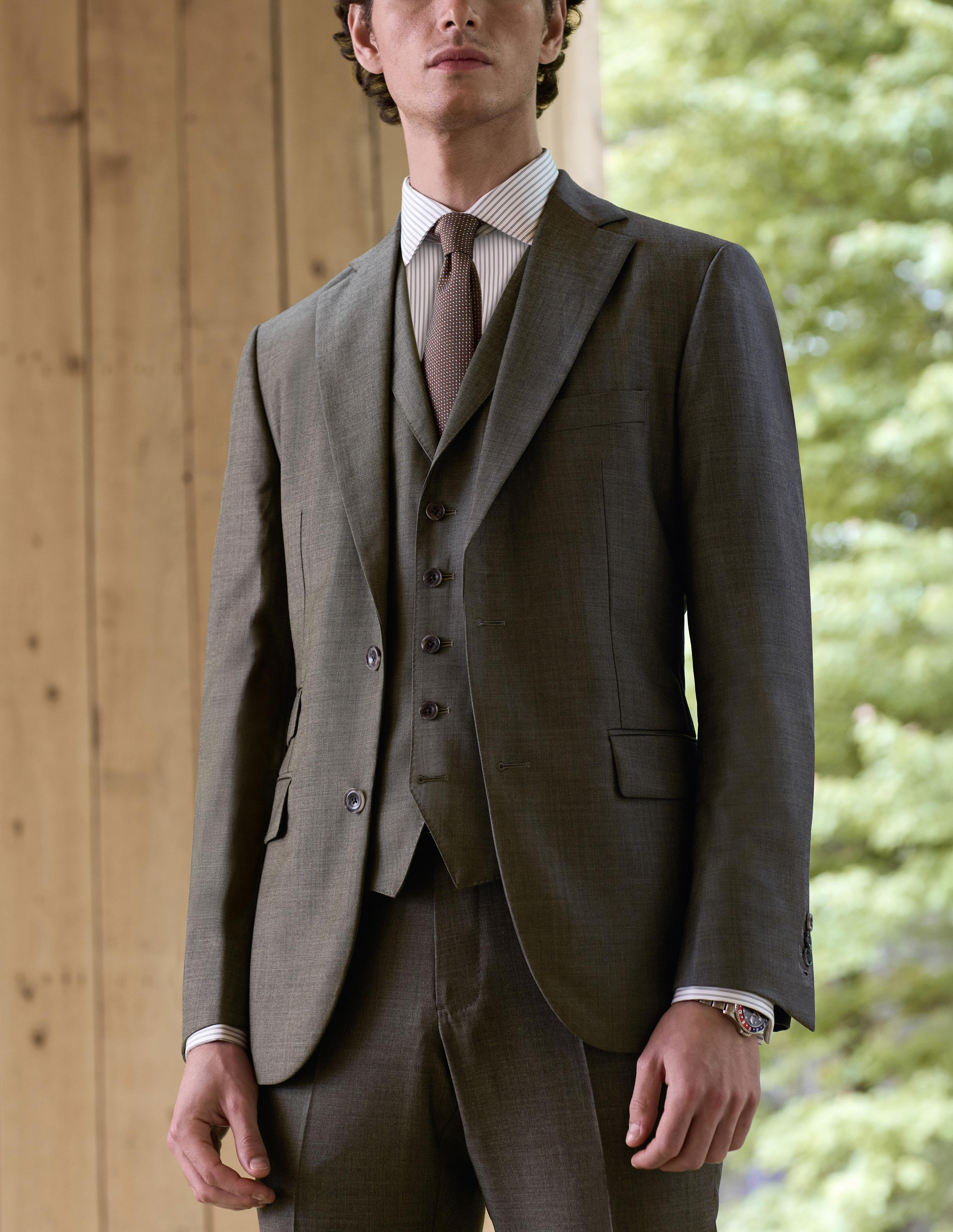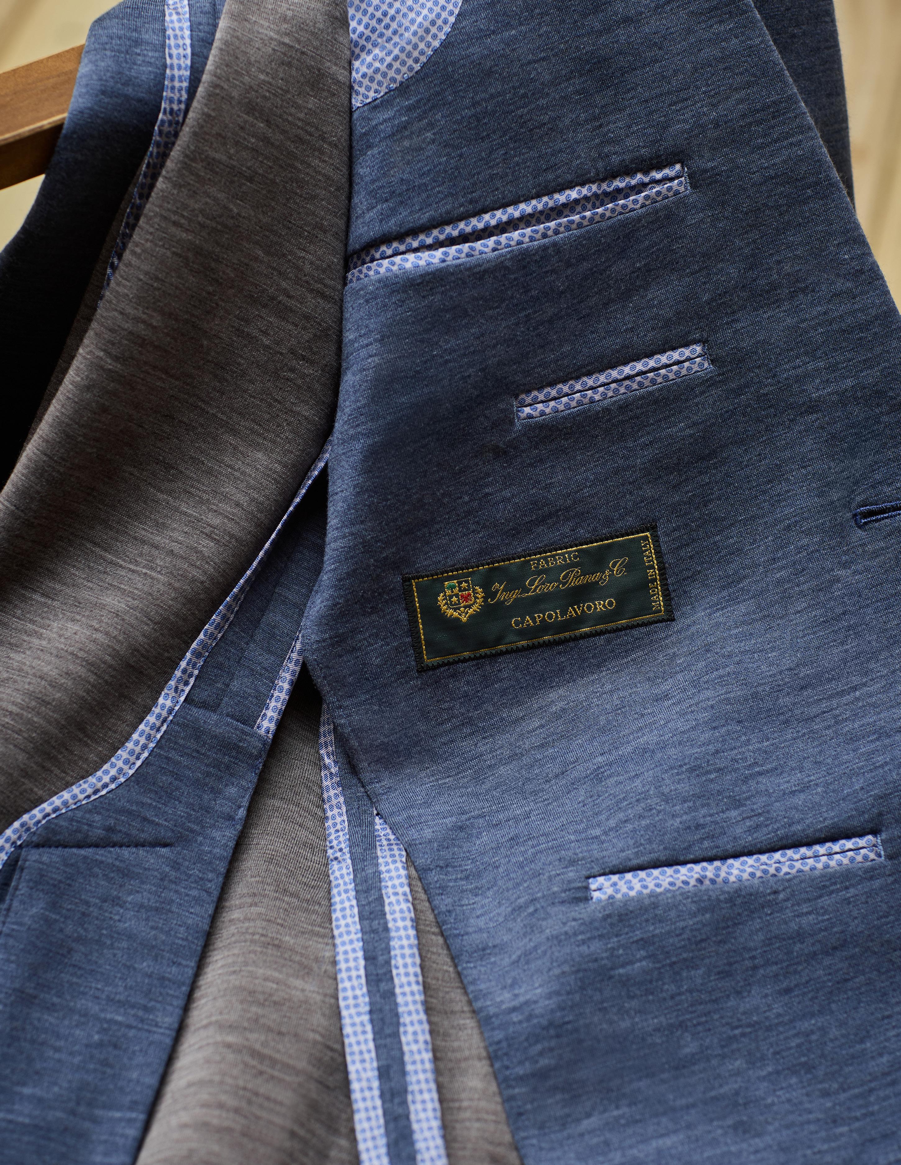 Meaning “masterpiece,” Capolavoro introduces a refined wool knit to our custom-made collection, offering exclusive styling and exceptional comfort. Its rich, nuanced tones are a hallmark of this luxurious Loro Piana cloth.