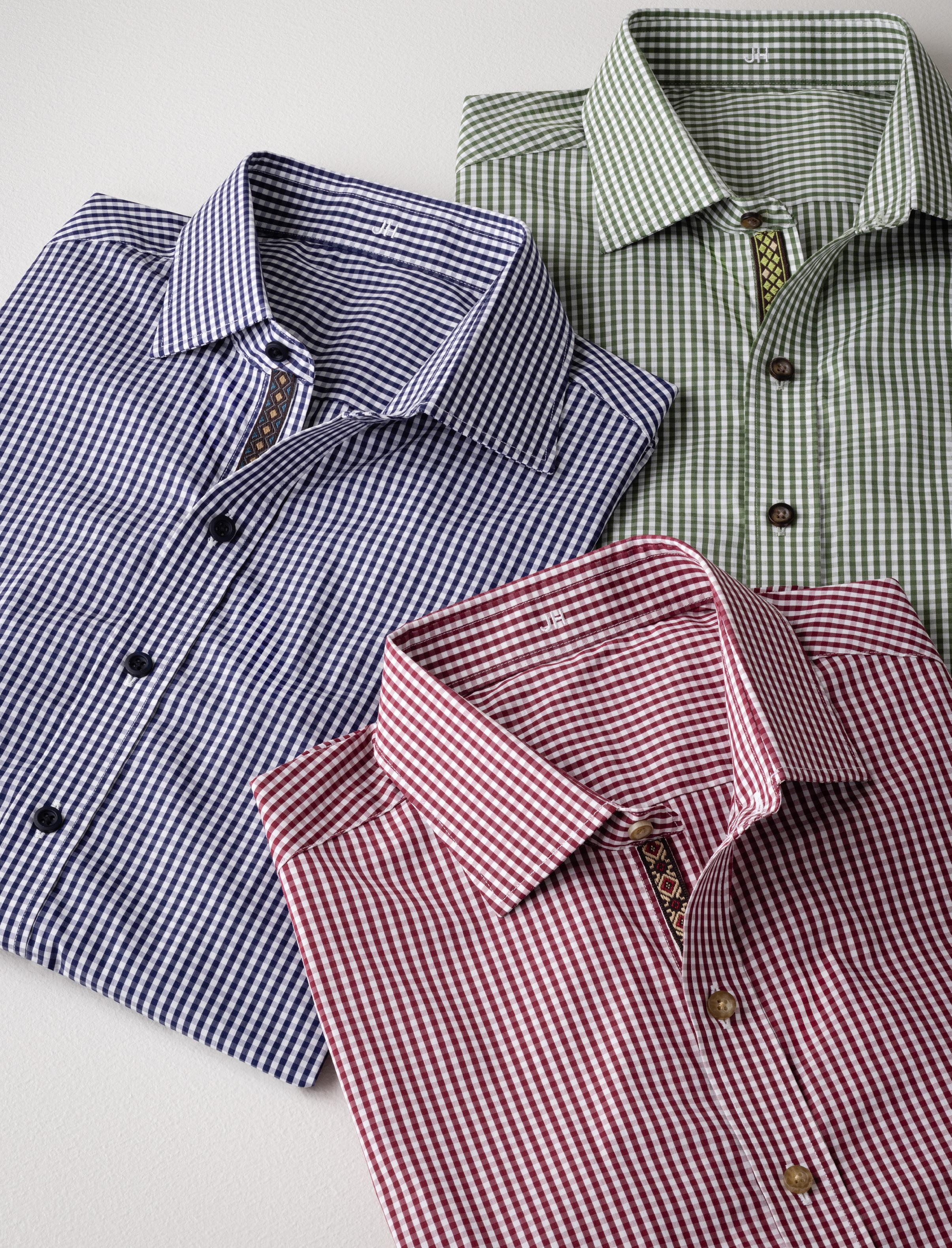 Attention to detail makes all the difference. Elevate your look with new trim and personalization options in our latest shirting collection. Shown above in our Mid Blue Gingham Twill from Albini, featuring our new “Navy Stitch” shirt tape.