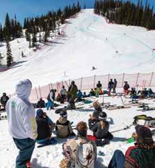 and participation in it had been declin ing. Moore says it needed new energy. While there was big buzz about the downhill race moving to Jackson Hole Mountain Resort, the race had a rough start. After weeks of groom ing and preparation, the new course, which links several runs on Apres Vous mountain together, was shut down before anyone launched from its starting gate. It didn’t help that it was Friday the 13th—March 13, 2020 to be exact. A day later, the re sort closed for the season because of Covid-19. So, it wasn’t until March 2021 that the inaugural Jackson Hole Downhill was held. Although many in the community were sad the Town Downhill ended, the Jackson Hole