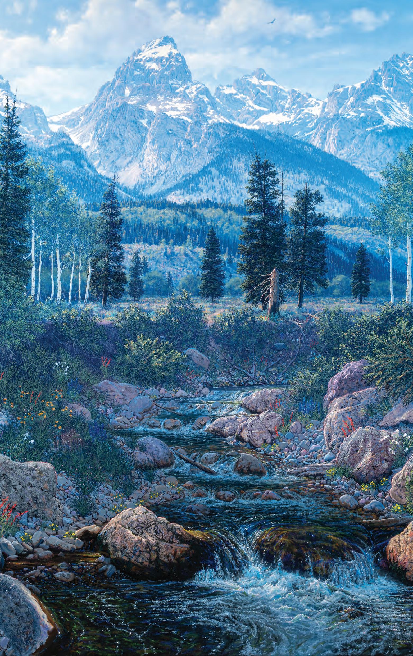 With Wyoming’s vast skylines and many delicate details, it should come as no surprise that the Jackson resident for over 20 years is creating art for all sizes and budgets, and in many modalities: oils, acrylics, ink and graphite. Ringholz, in 2012 at the age of 34, was named the youngestever featured artist for the Fall Arts Festival.