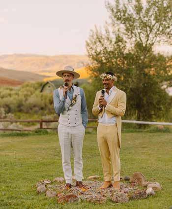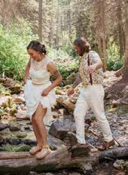 Suzanne and Joel’s wedding ceremony on the banks of the Hoback River followed a traditional Scottish theme due to their common family ties to the Scottish Highlands. They recruited Joel’s 83-year-old uncle, a Scottish Lord, to perform their ceremony, which culminated with a pistol salute that may or may not have gone off with a hitch. (You’ll need to read their story on page 66 to find out.)