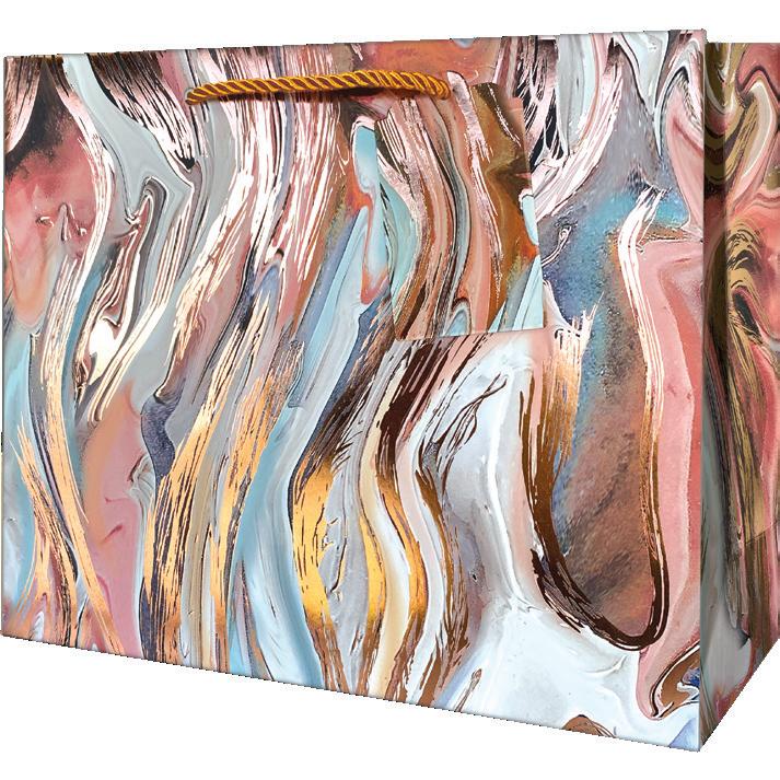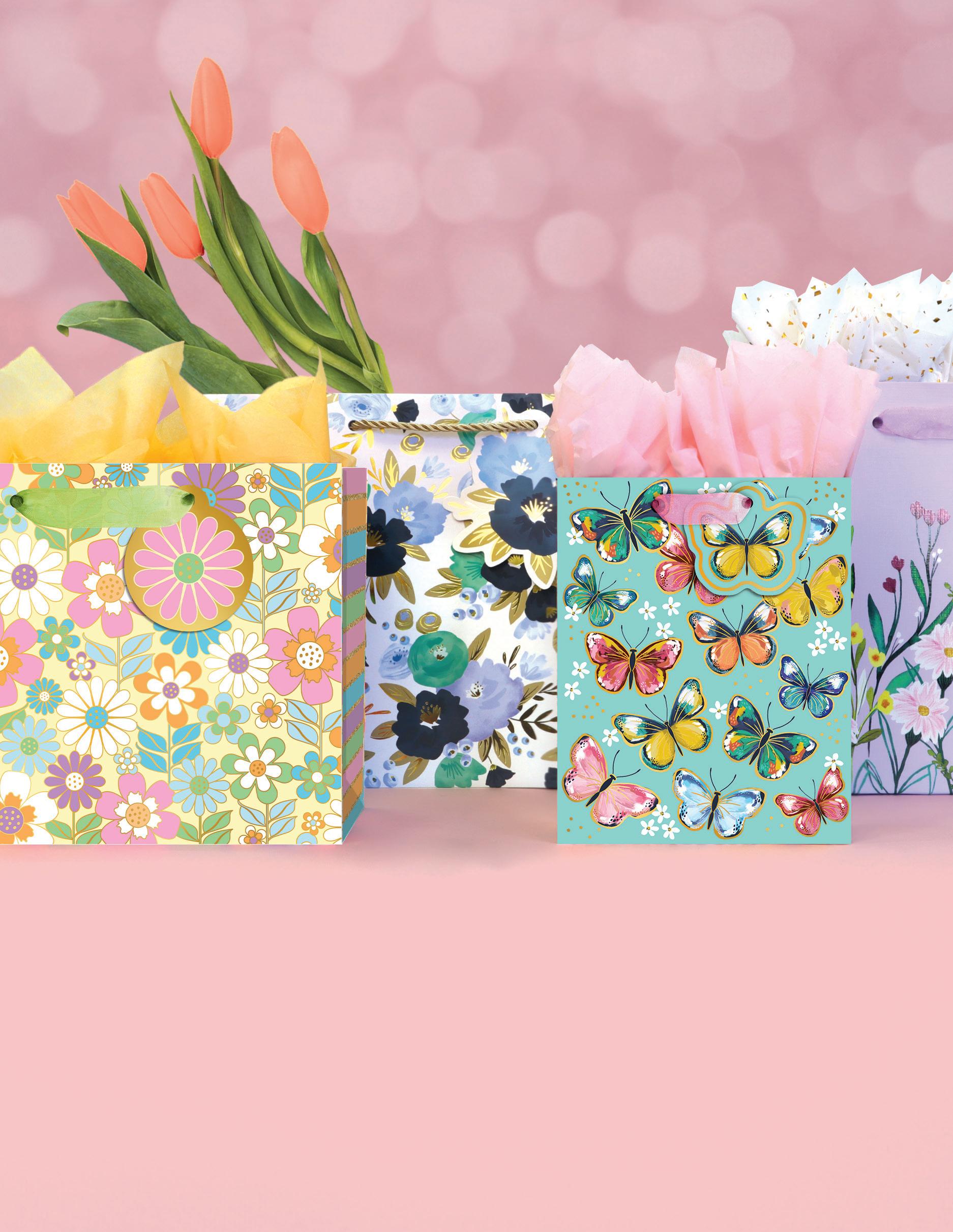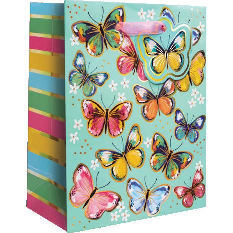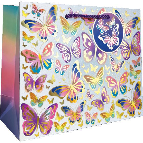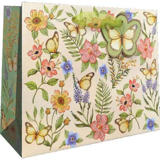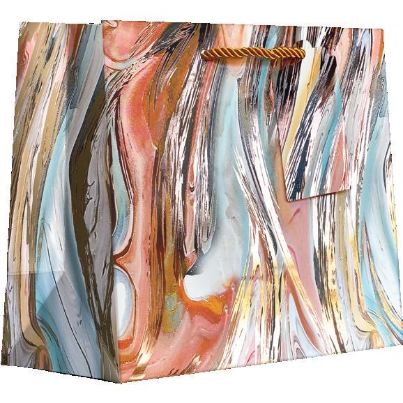 = horizontal v = vertical Width x Height x Depth (Gusset) / Made from 100% recycled paper containing a minimum of 20%+ post-consumer fiber. Printed using soy-based inks and non-toxic UV