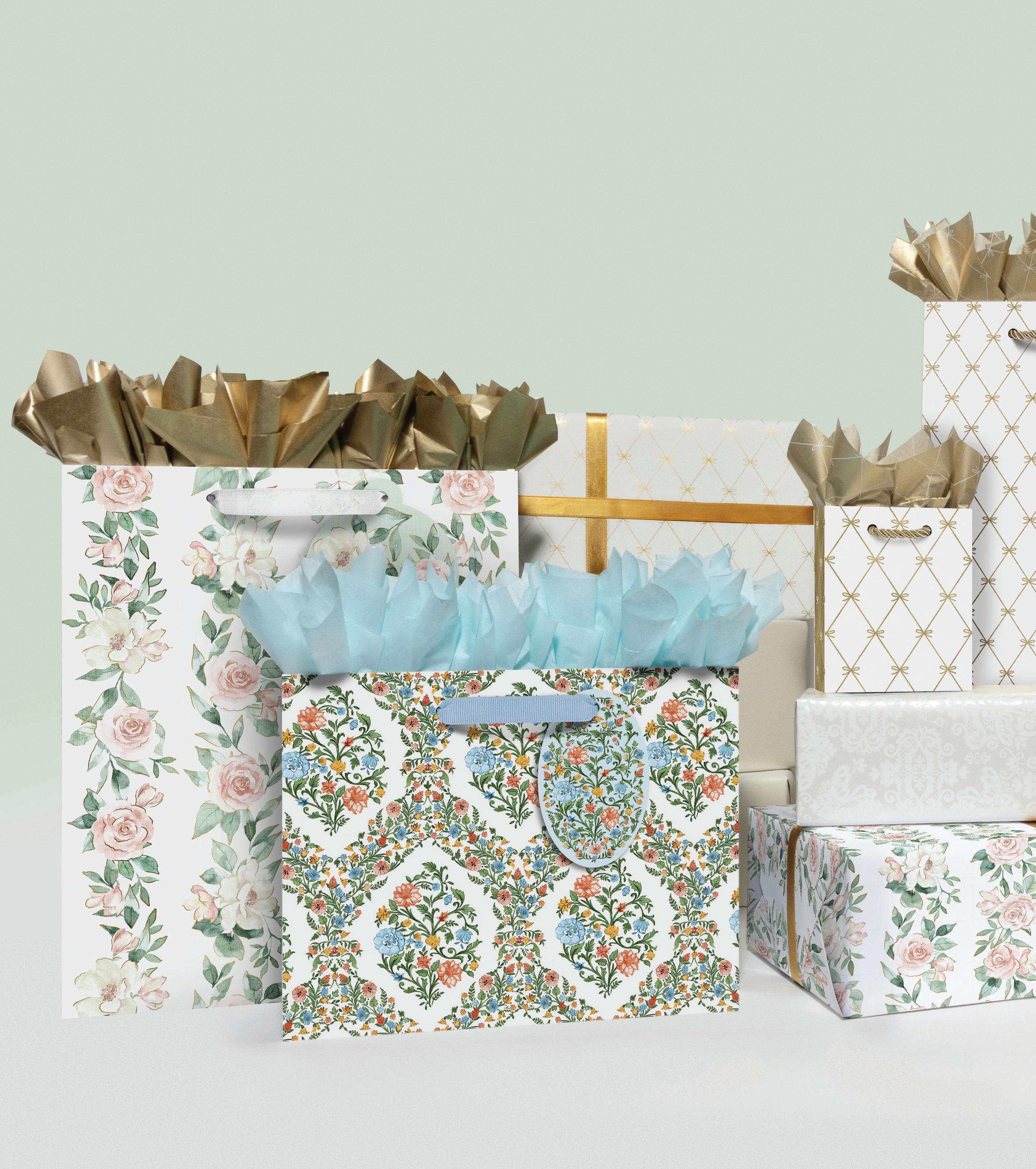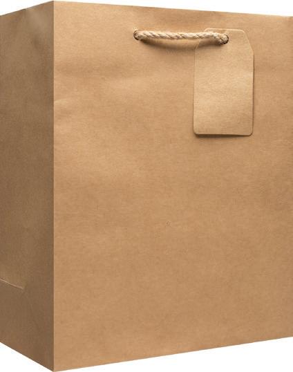Kraft gift bags are made from 100% recycled paper containing a minimum of 70% postconsumer fiber. Chlorine and bleach free and printed using water-based non-toxic inks.