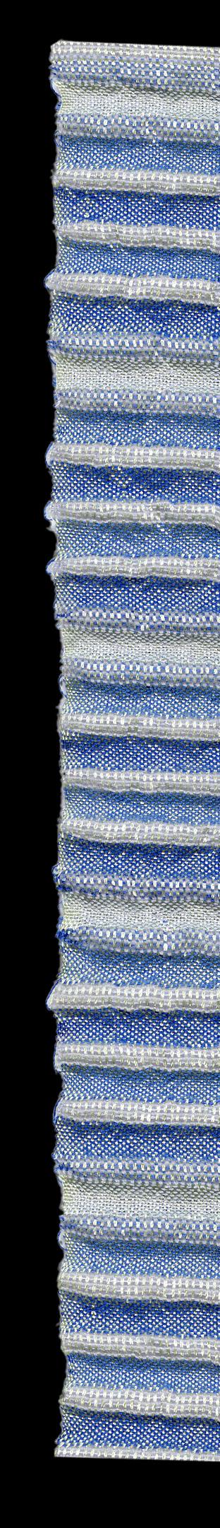 Experimenting with the possibilities of color illusion by pleating with alternative colors, creating contrasting surface texture with warp floats, and making color gradations.